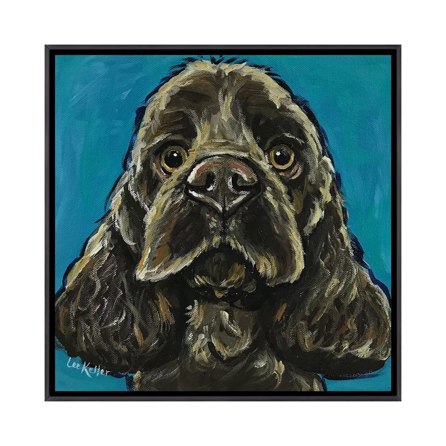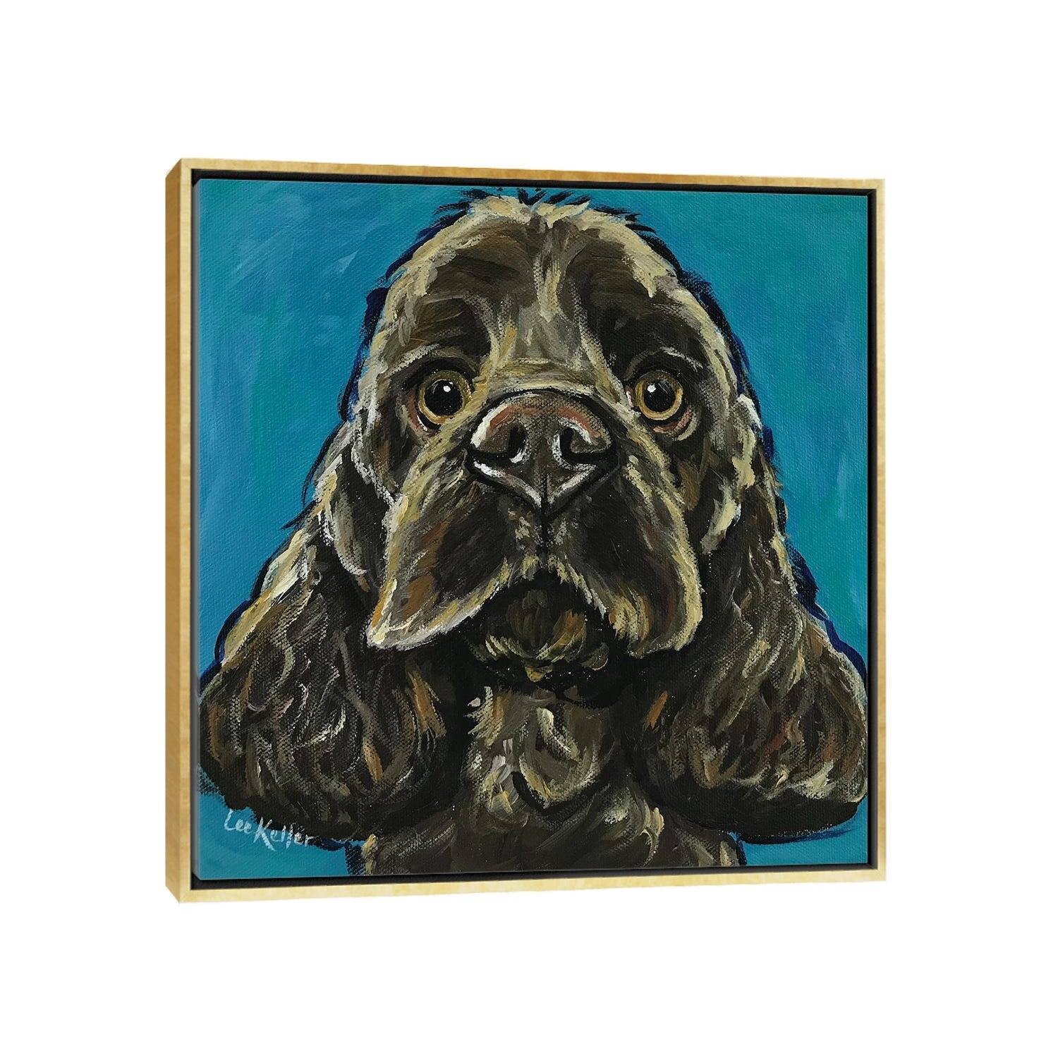 iCanvas "Cocker Spaniel on Teal" by Hippie Hound Studios Framed Canvas Print