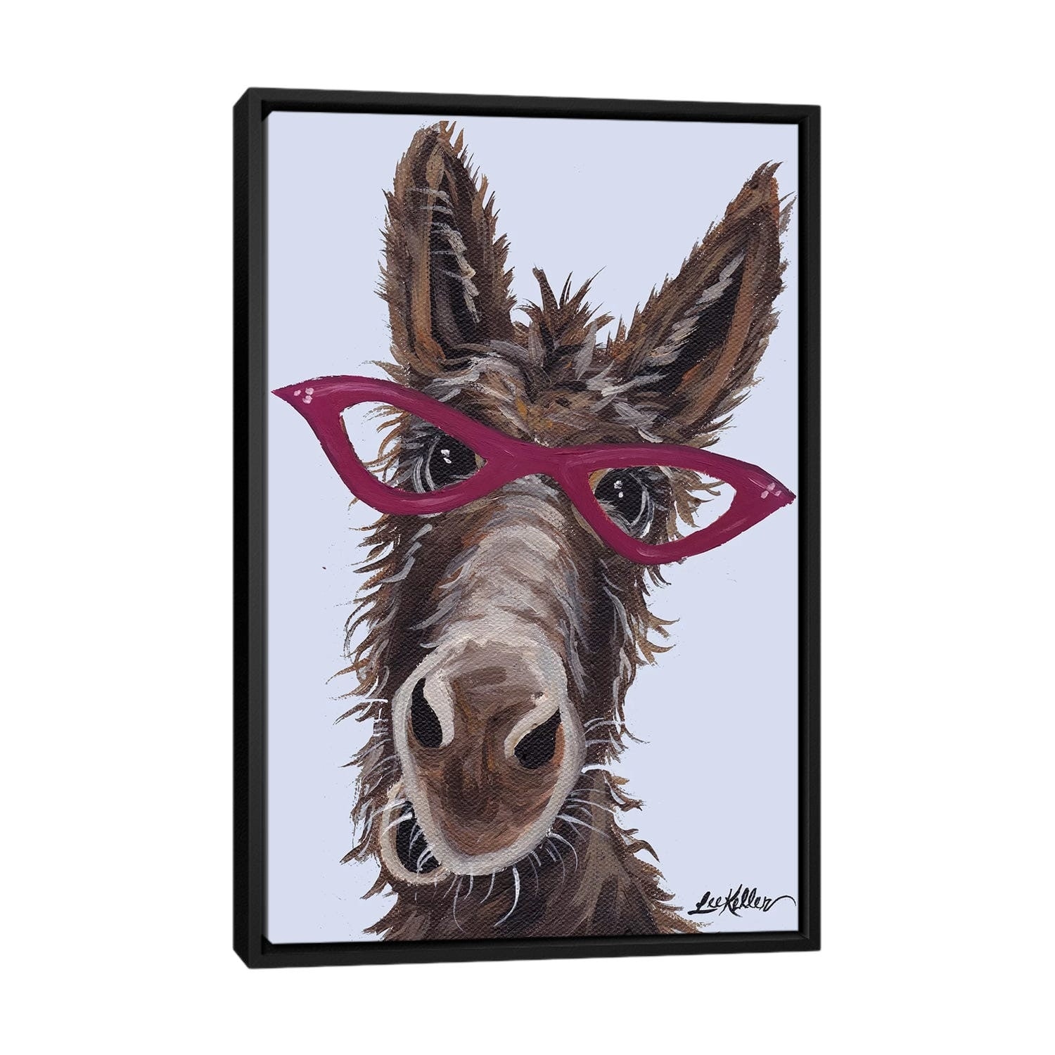 iCanvas "Donkey With Glasses on Gray" by Hippie Hound Studios Framed Canvas Print