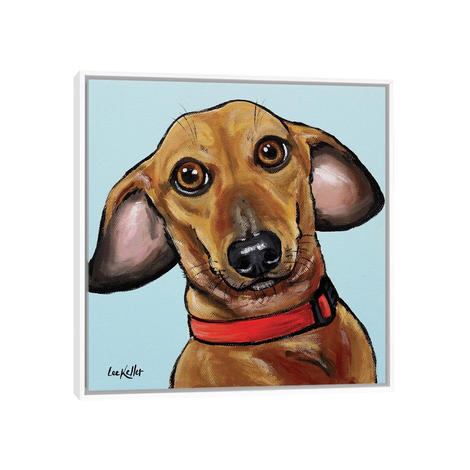 iCanvas "Dachshund On Turquoise" by Hippie Hound Studios Framed Canvas Print