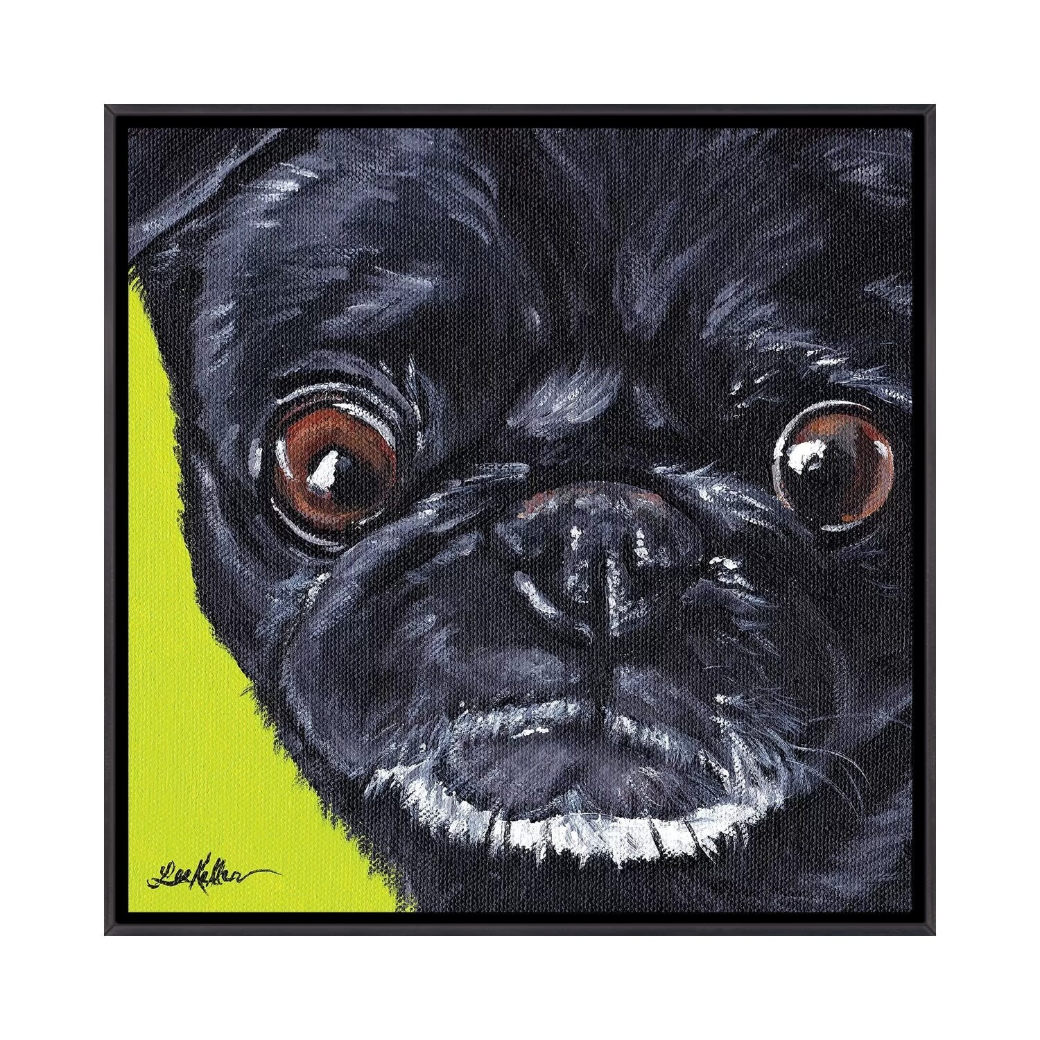 iCanvas "Black Pug on Green" by Hippie Hound Studios Framed