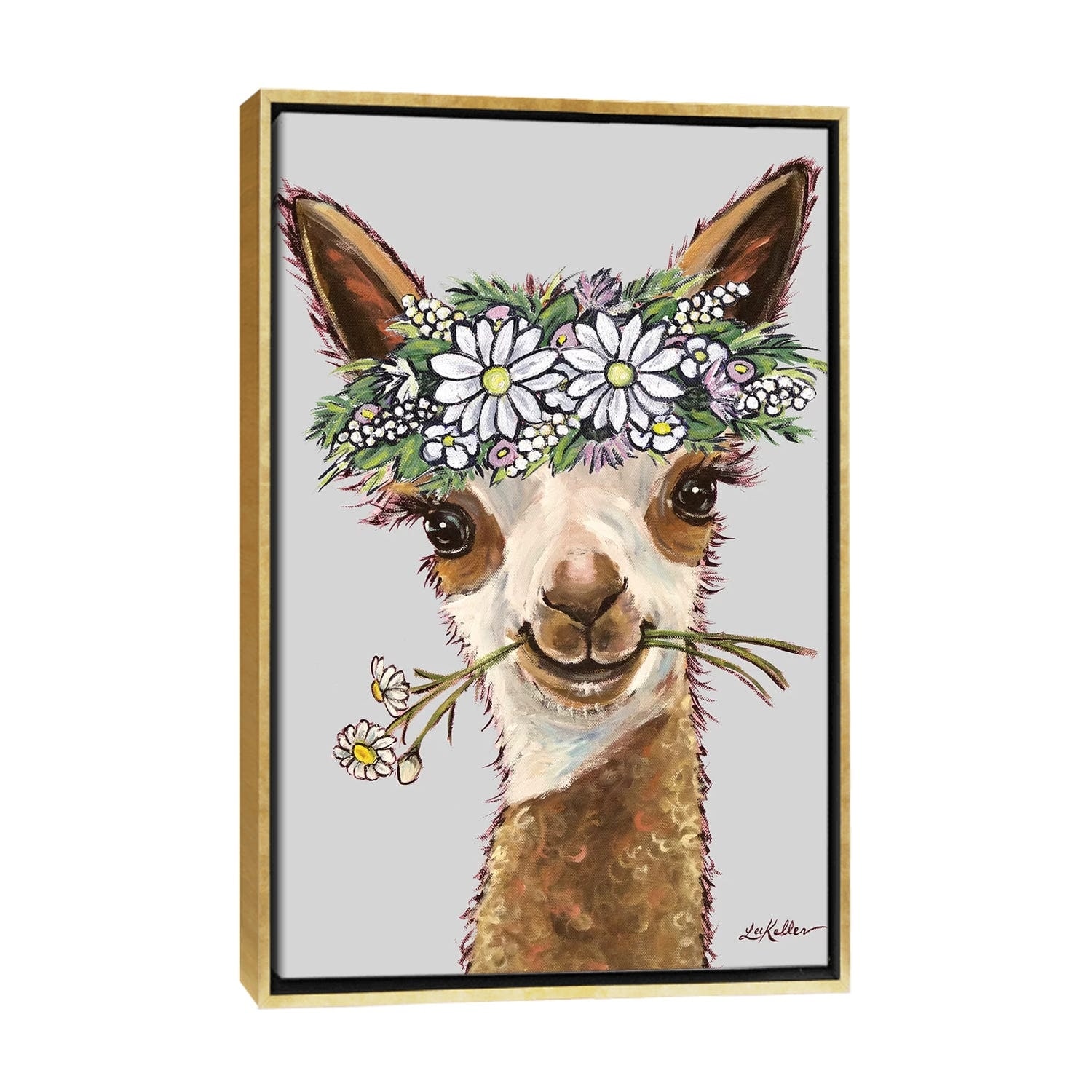 iCanvas "Rosie AIpaca With Daisies on Gray" by Hippie Hound Studios Framed