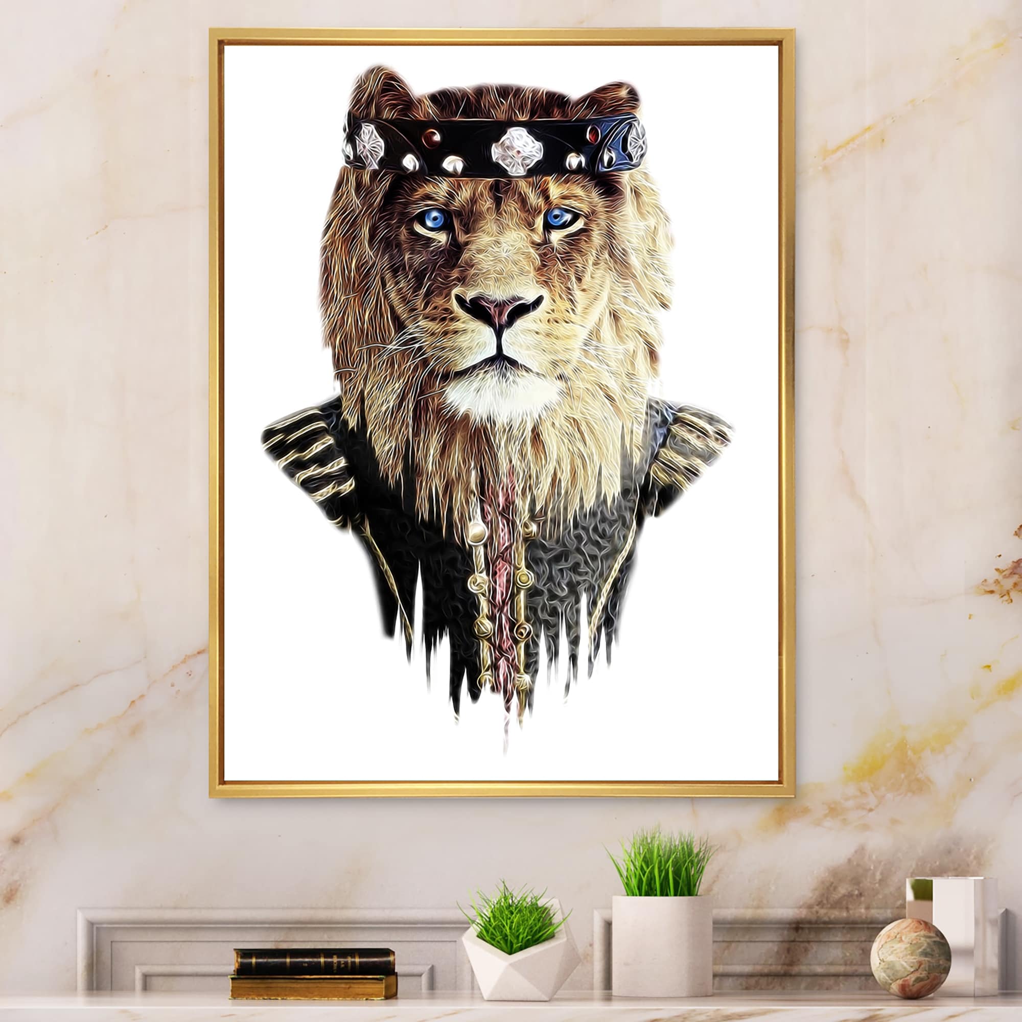 Designart "Hipster Lion King Head" Children's Art Framed Art Print