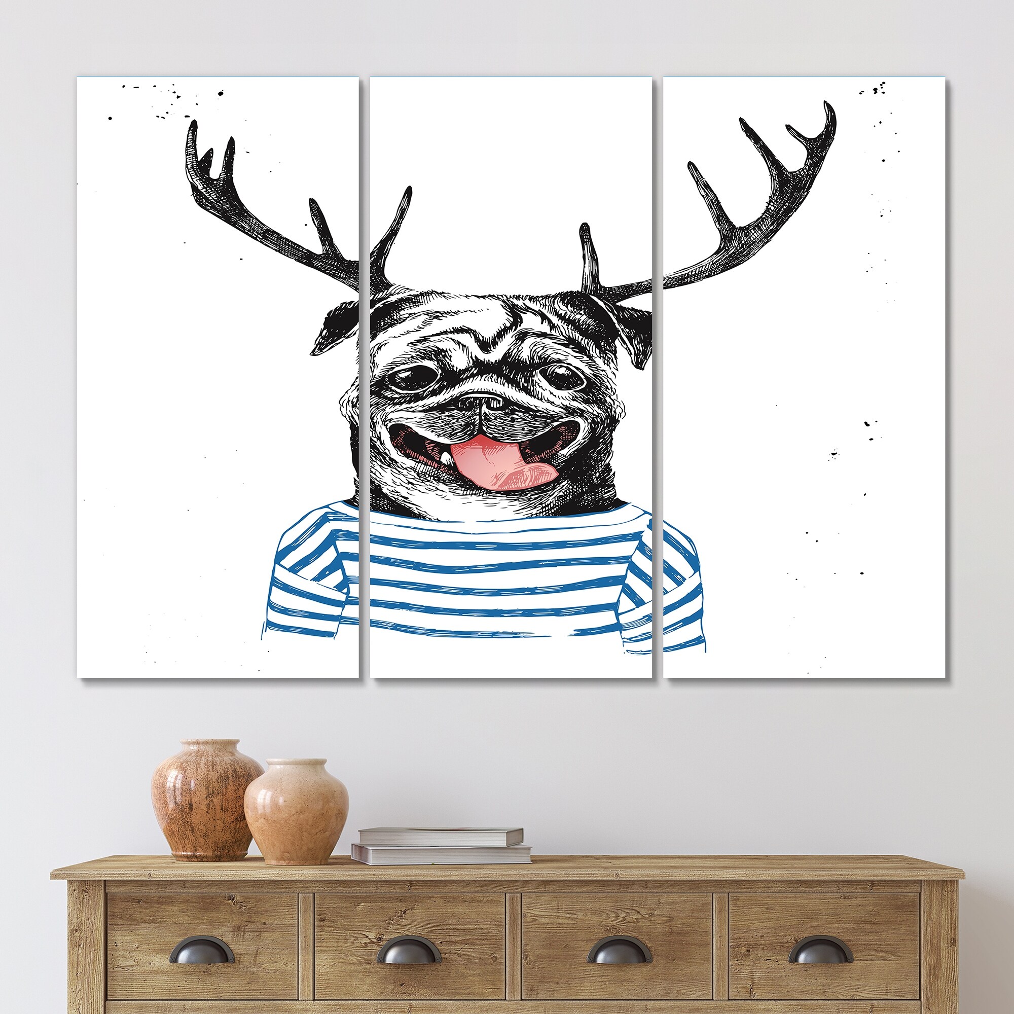 Designart "Dressed Up Pug in Hipster Style" Traditional Canvas Wall Art Print