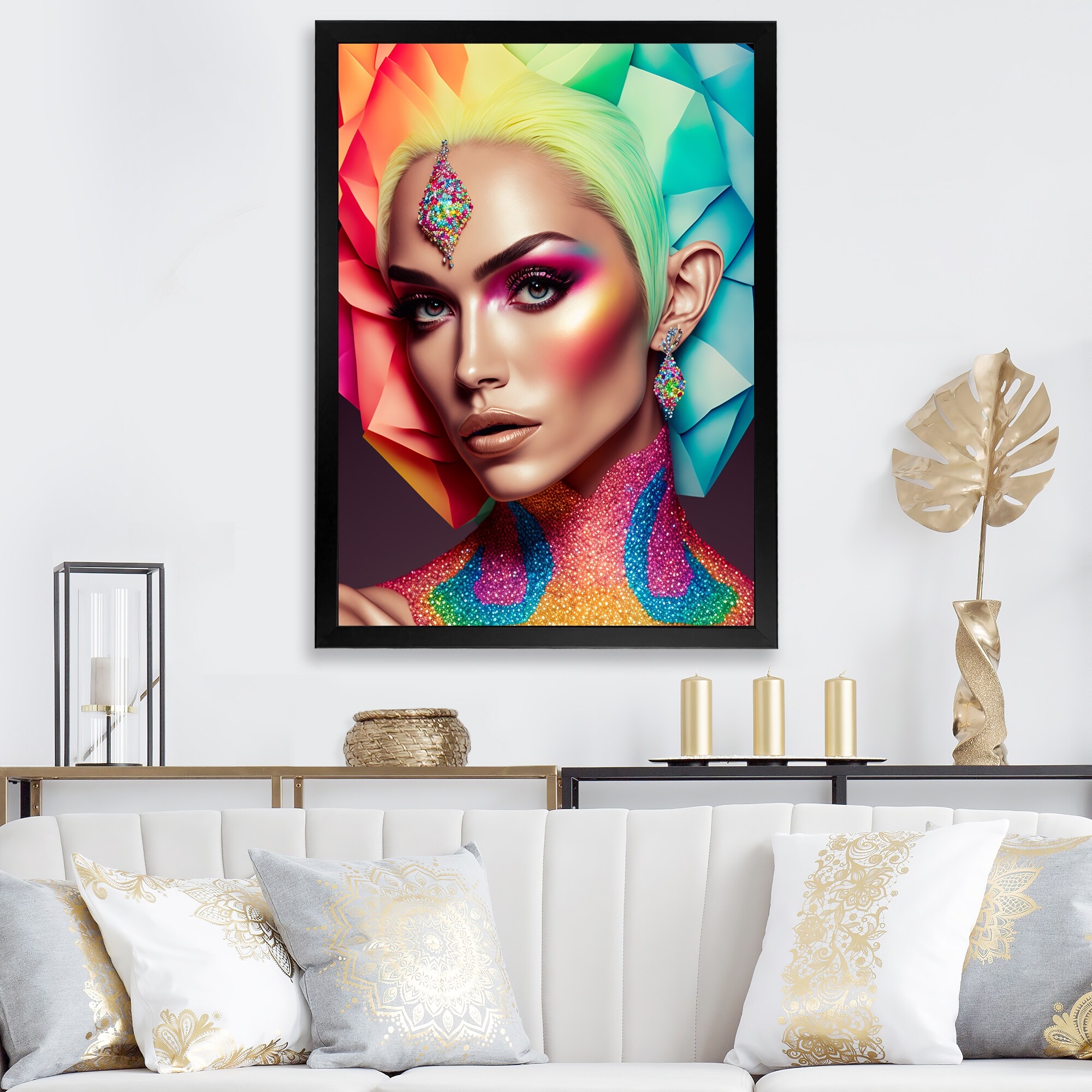 Designart "Retrofuturistic Contemporary Hipsters III" Woman Pop Art Framed Canvas Art Print