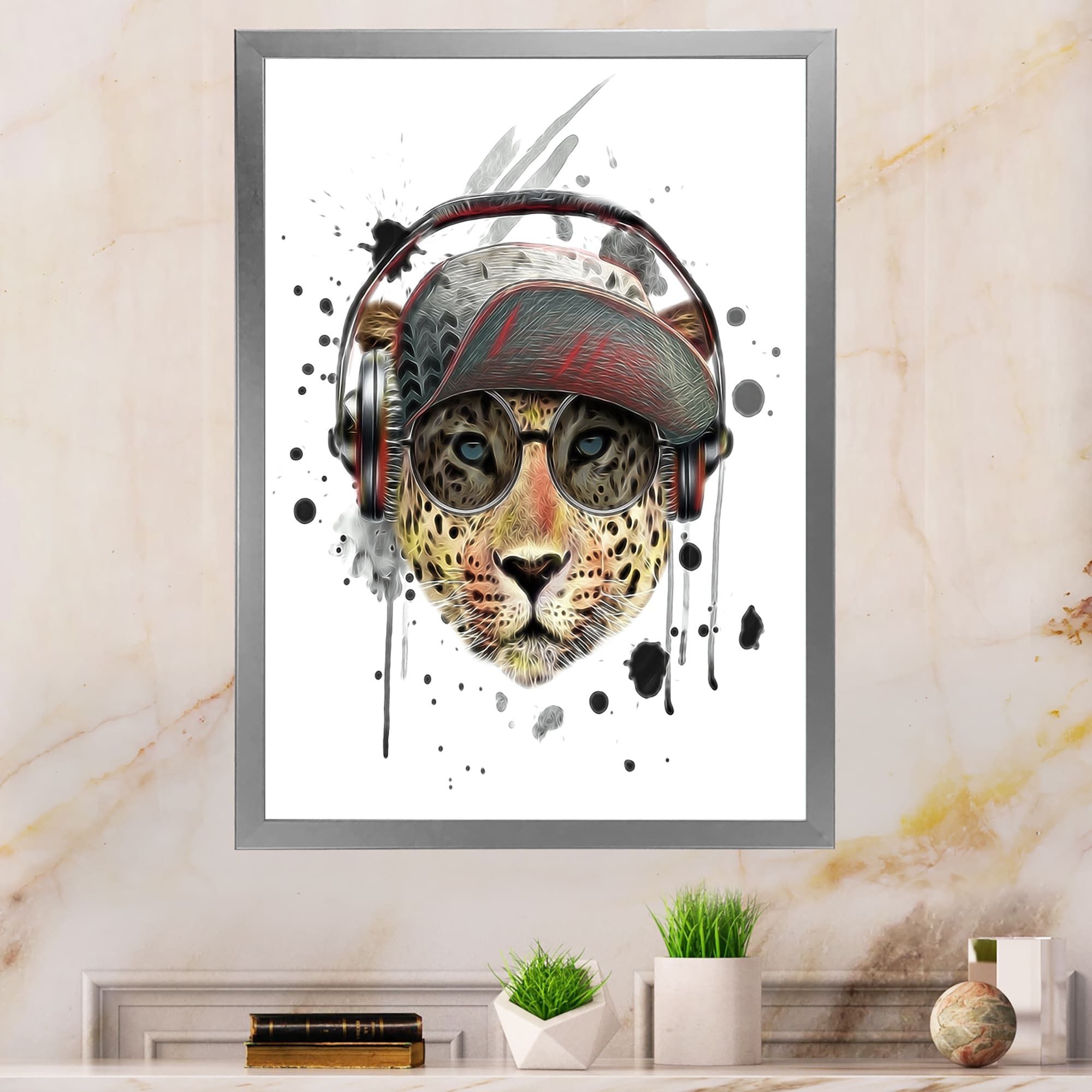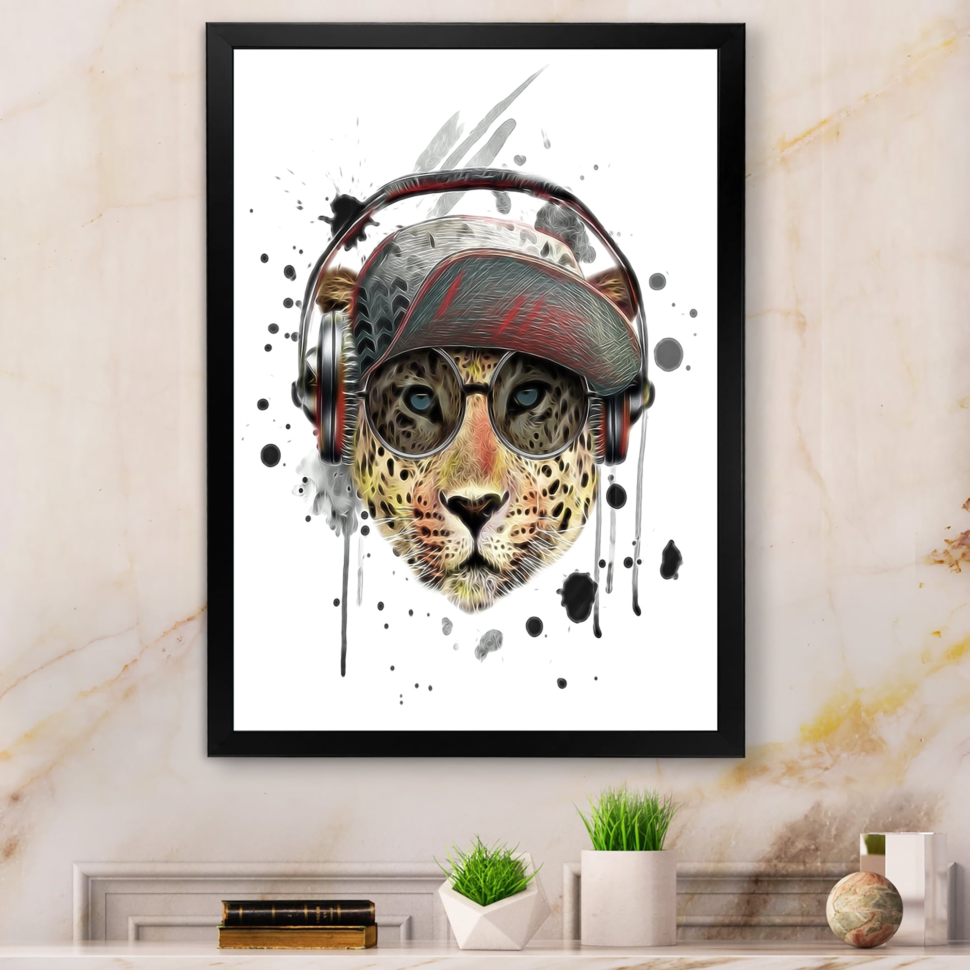 Designart "Hipster Stylish Leopard Head" Children's Art Framed Wall Decor