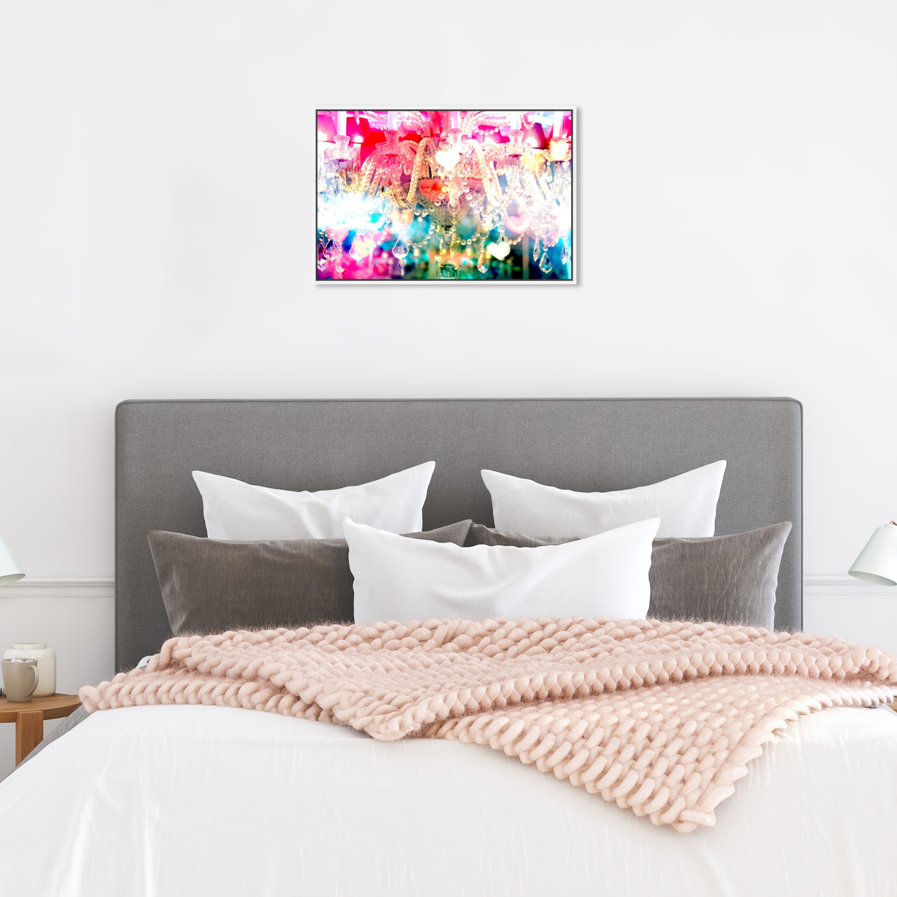 Oliver Gal 'A Versailles Hipster' Fashion and Glam Wall Art Framed Canvas Print Chandeliers - Pink, Green