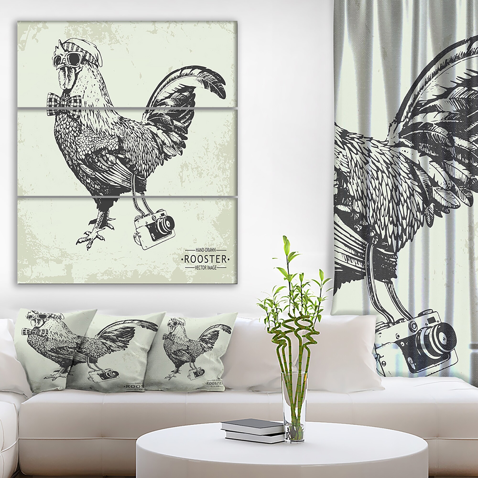 Designart "Handdrawn vintage rooster hipster style" of Farmhouse Animals of Print on Wrapped Canvas set