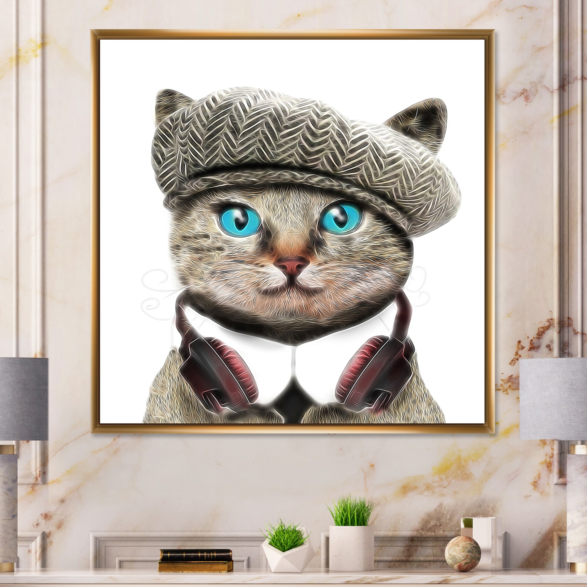 Designart "Hipster Lion King Head" Children's Art Framed Canvas Art Print