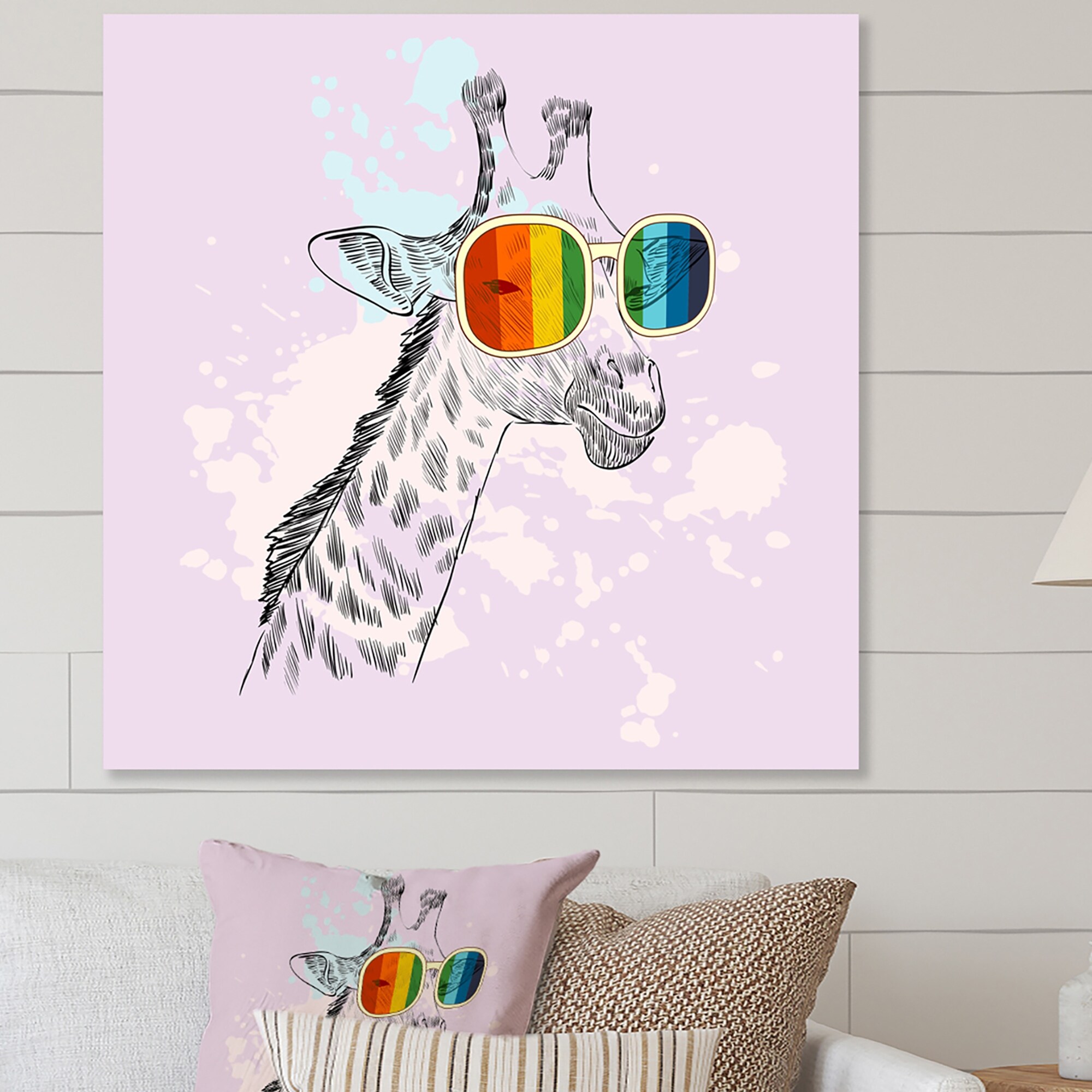 Designart "Cartoon Hipster Giraffe" Traditional Canvas Wall Art