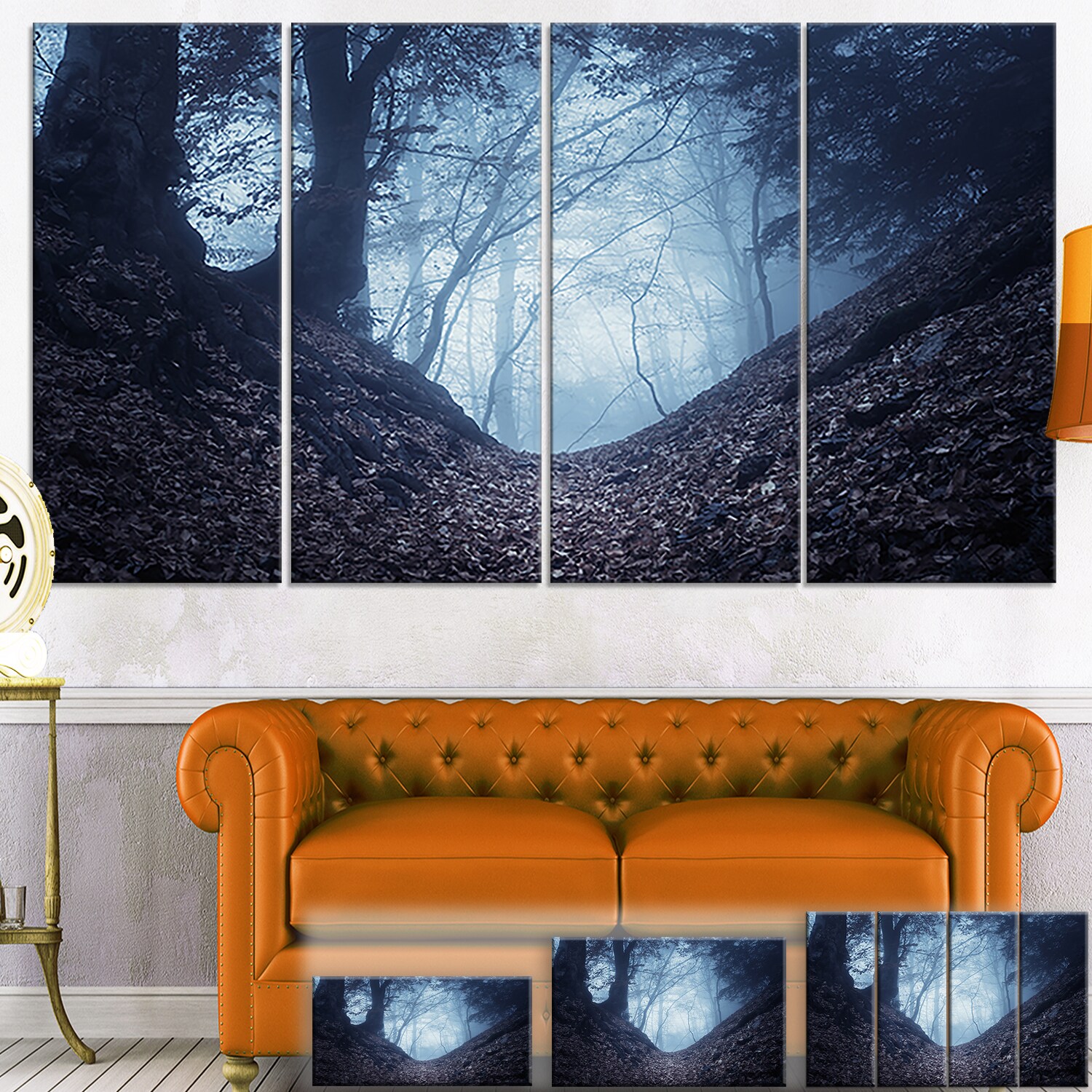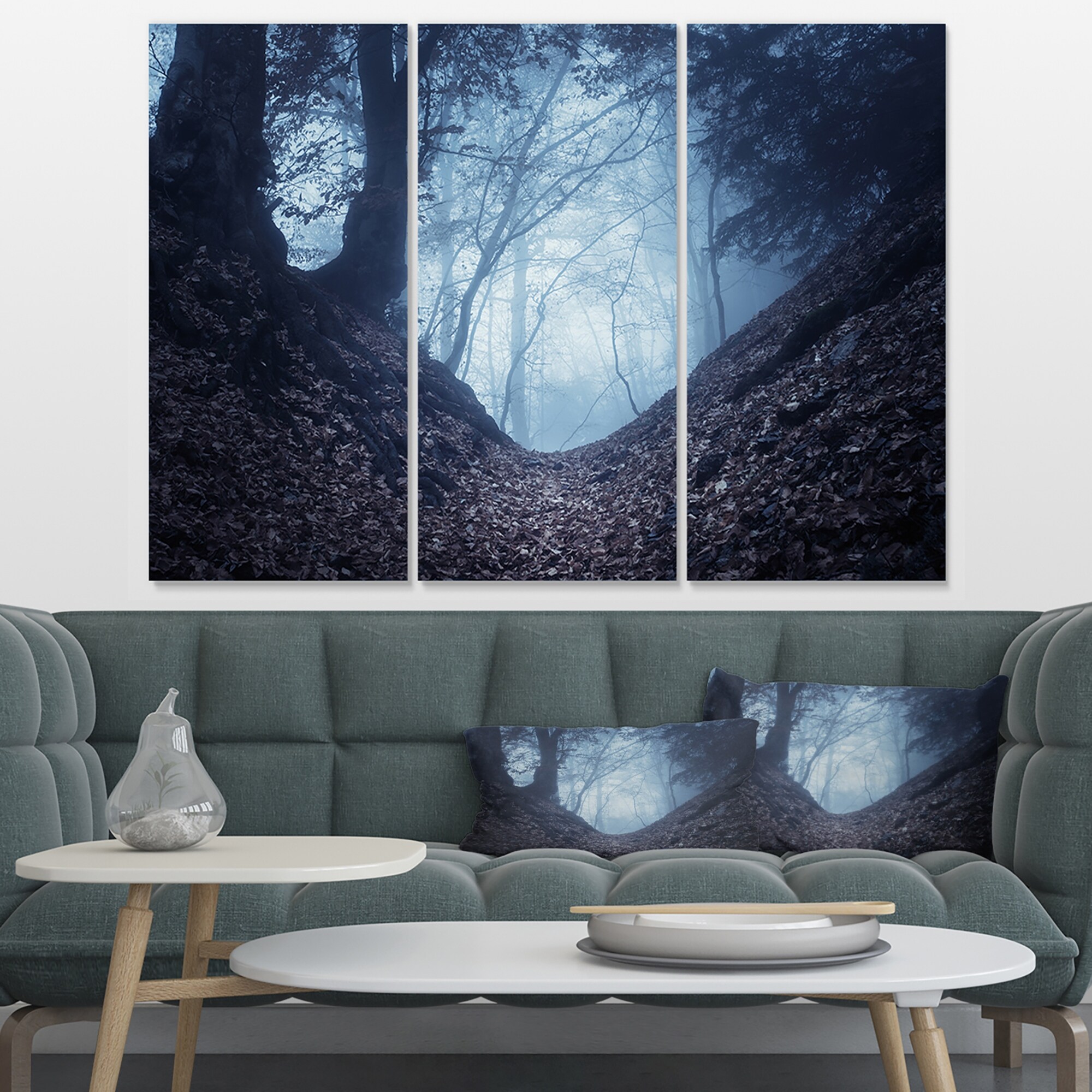 Designart "Sunlight Hitting Foggy Forest" Landscape Photography Canvas Print - 36x28 - 3 Panels