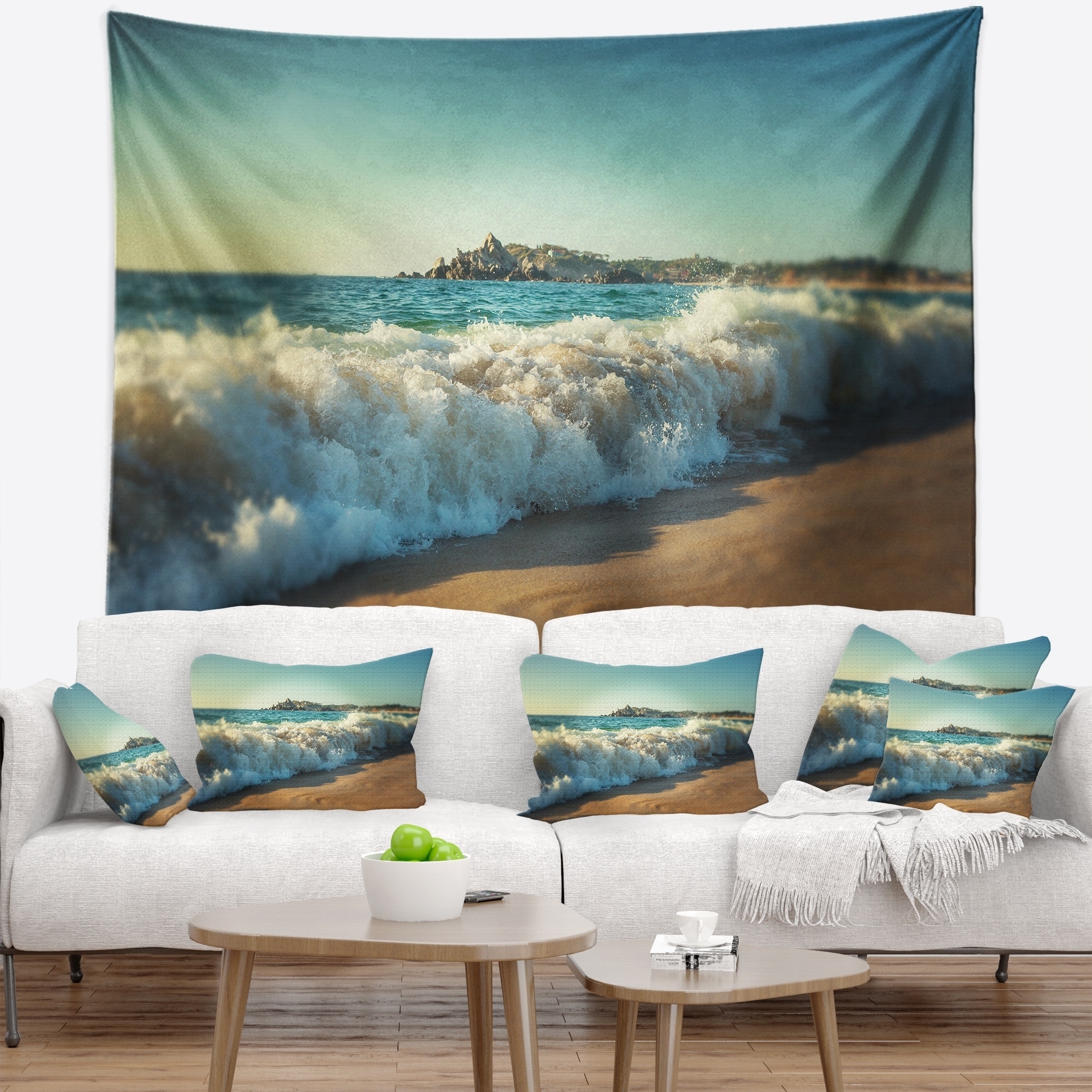 Designart 'Stormy Waves Hitting Beach Sand' Modern Beach Wall Tapestry
