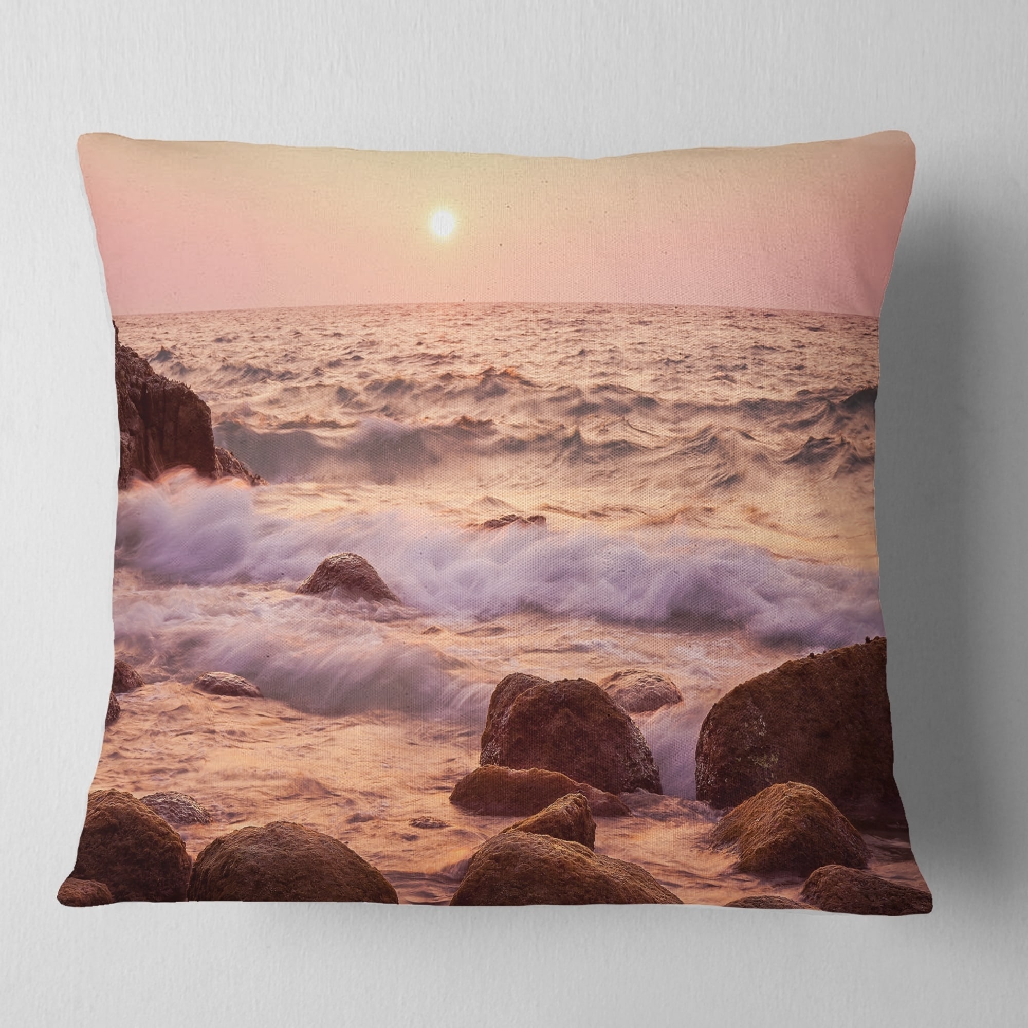 Designart 'Waves Hitting Rocky Beach' Beach Photo Throw Pillow