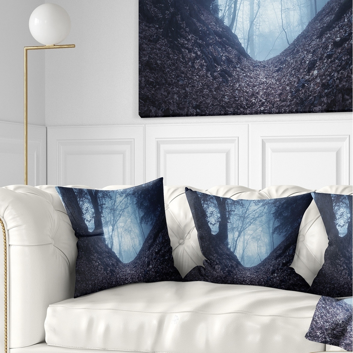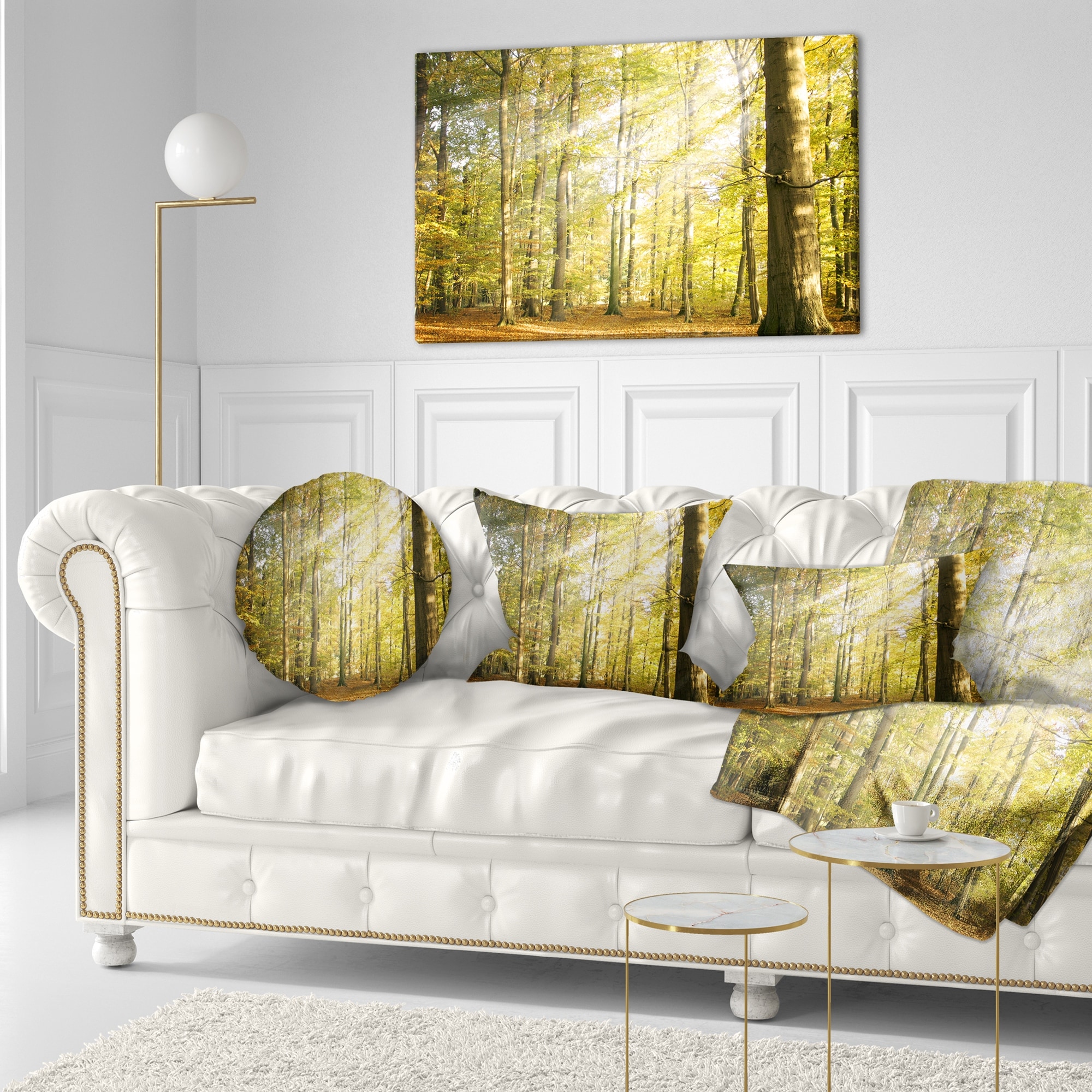 Designart 'Sunlight Hitting Foggy Forest' Landscape Photography Throw Pillow