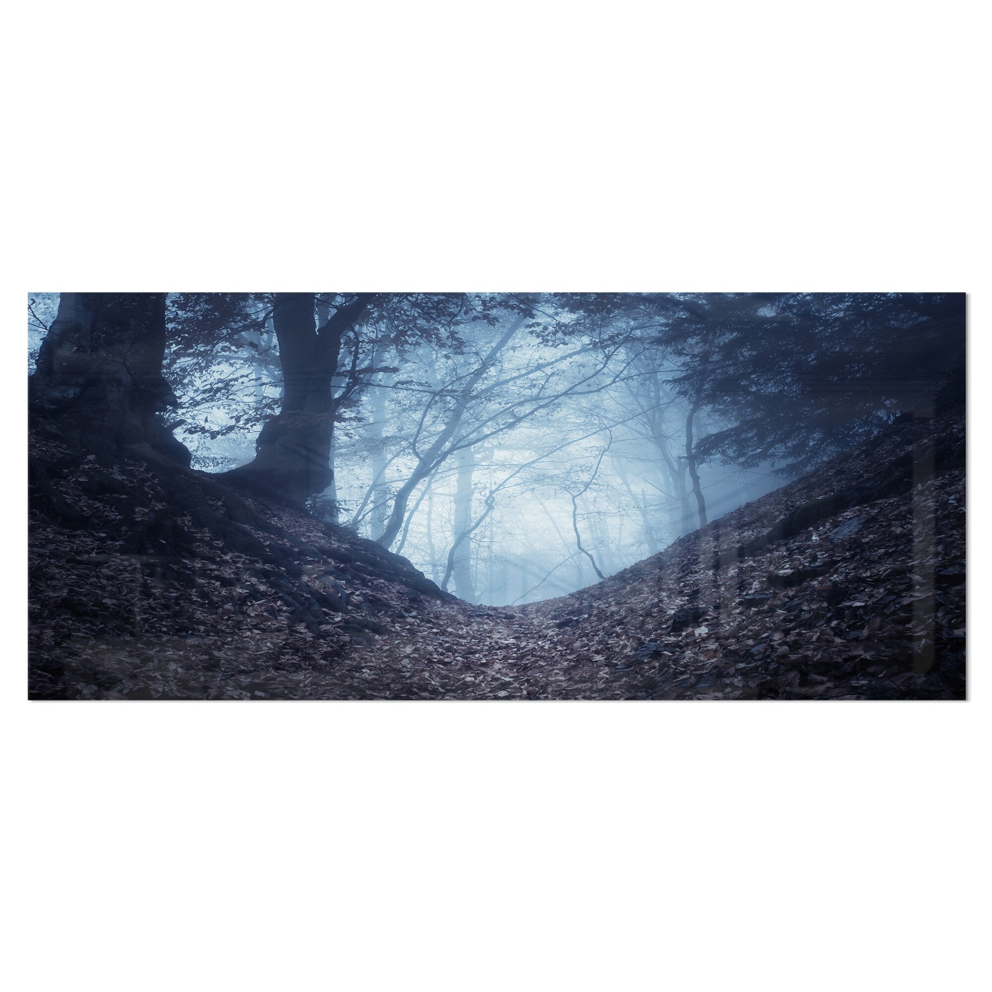 Designart 'Sunlight Hitting Foggy Forest' Landscape Photo Metal Wall Art