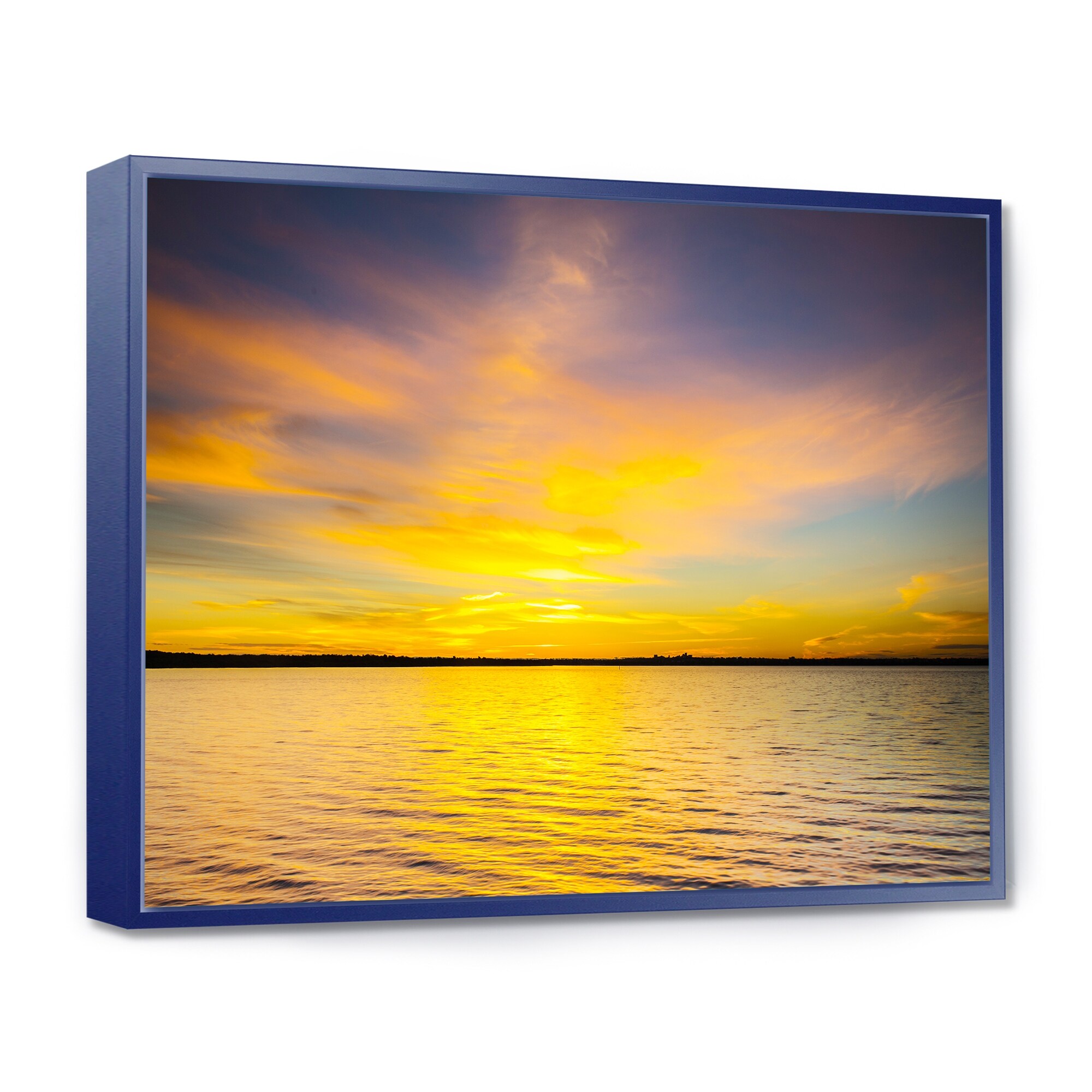 Designart "Yellow Sunrise Light Hitting Waters" Large Seashore Framed Canvas Print