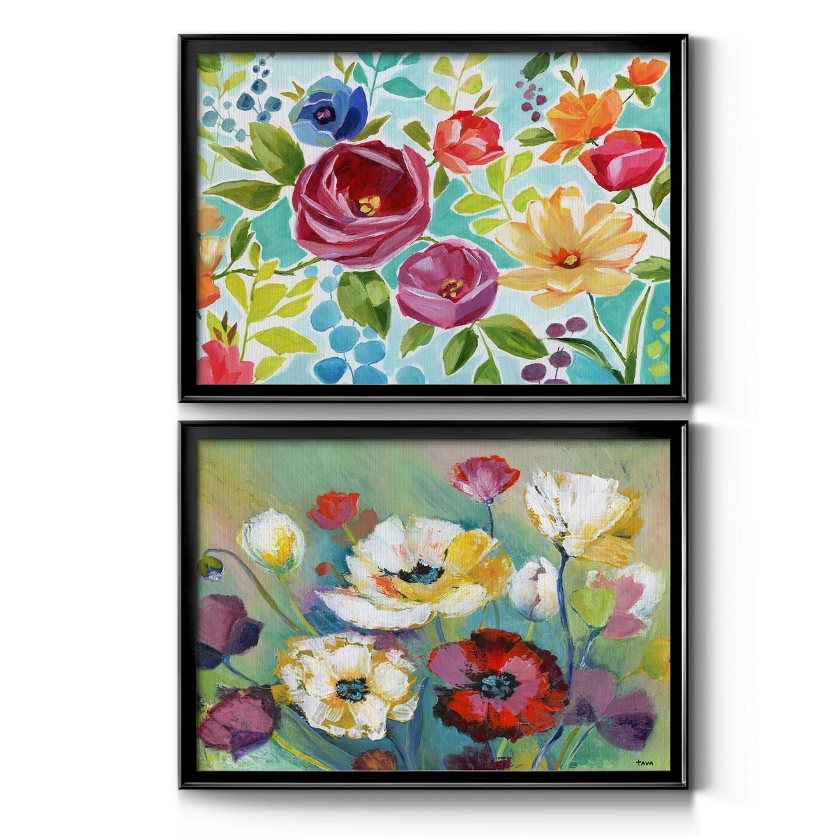 "Midsummer Garden Flowers IV" by Silvia Vassileva Set of 4 Canvas - Blue