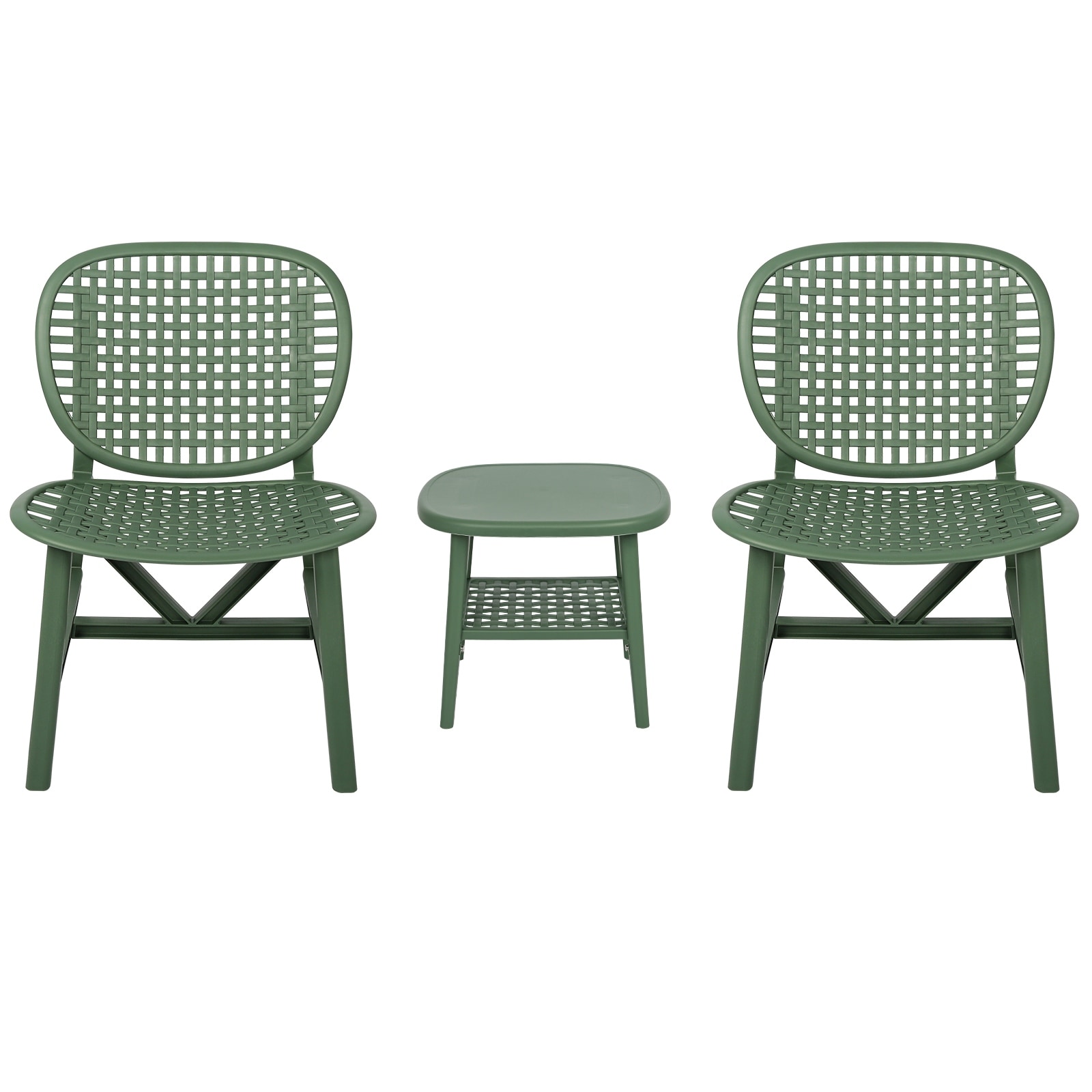3-Pieces Hollow Design Retro Outdoor Patio Table Chair Sets for 2, Conversation Chair Sets with Open Shelf & Widened Seat