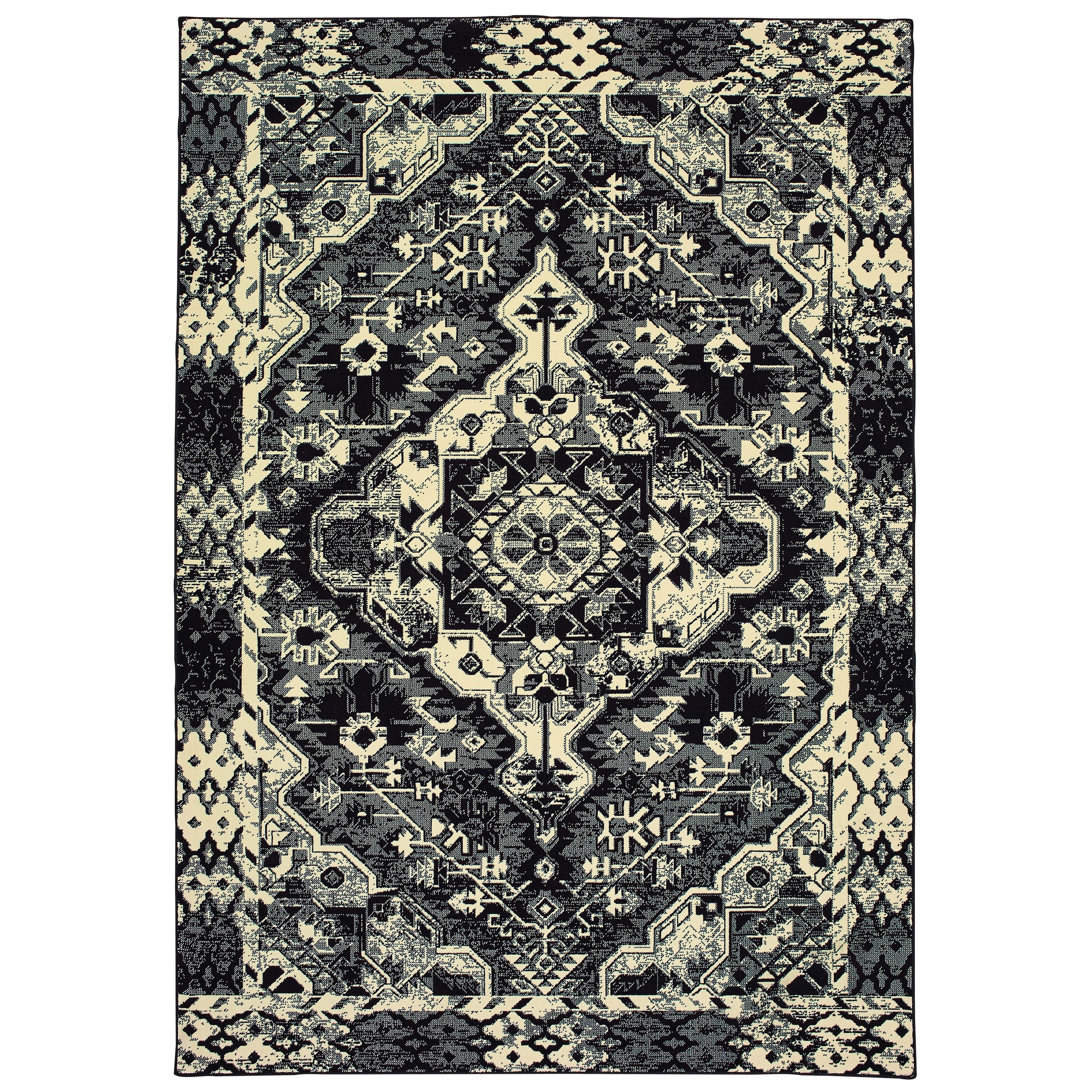 Gracewood Hollow Moss Medallion Black/ Ivory Micro Fiber Rug