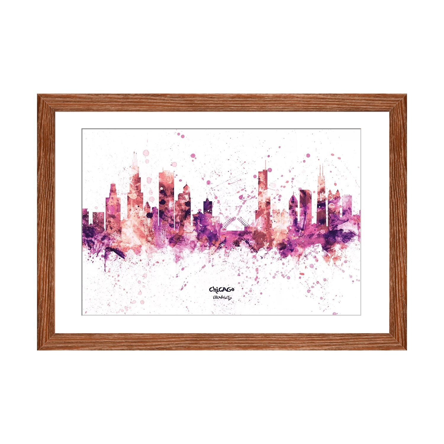 iCanvas "Chicago Illinois Skyline Splash Pink" by Michael Tompsett