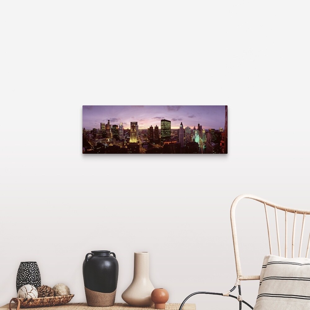 "Skyscrapers in a city at dusk, Chicago, Illinois" Canvas Wall Art
