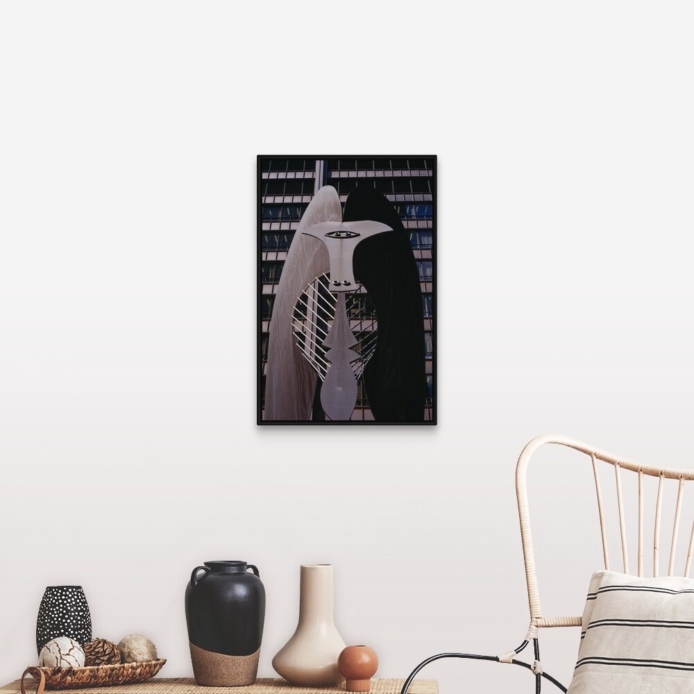 "Sculpture in front of a building, Daley Plaza, Chicago, Illinois" Black Float Frame Canvas Art