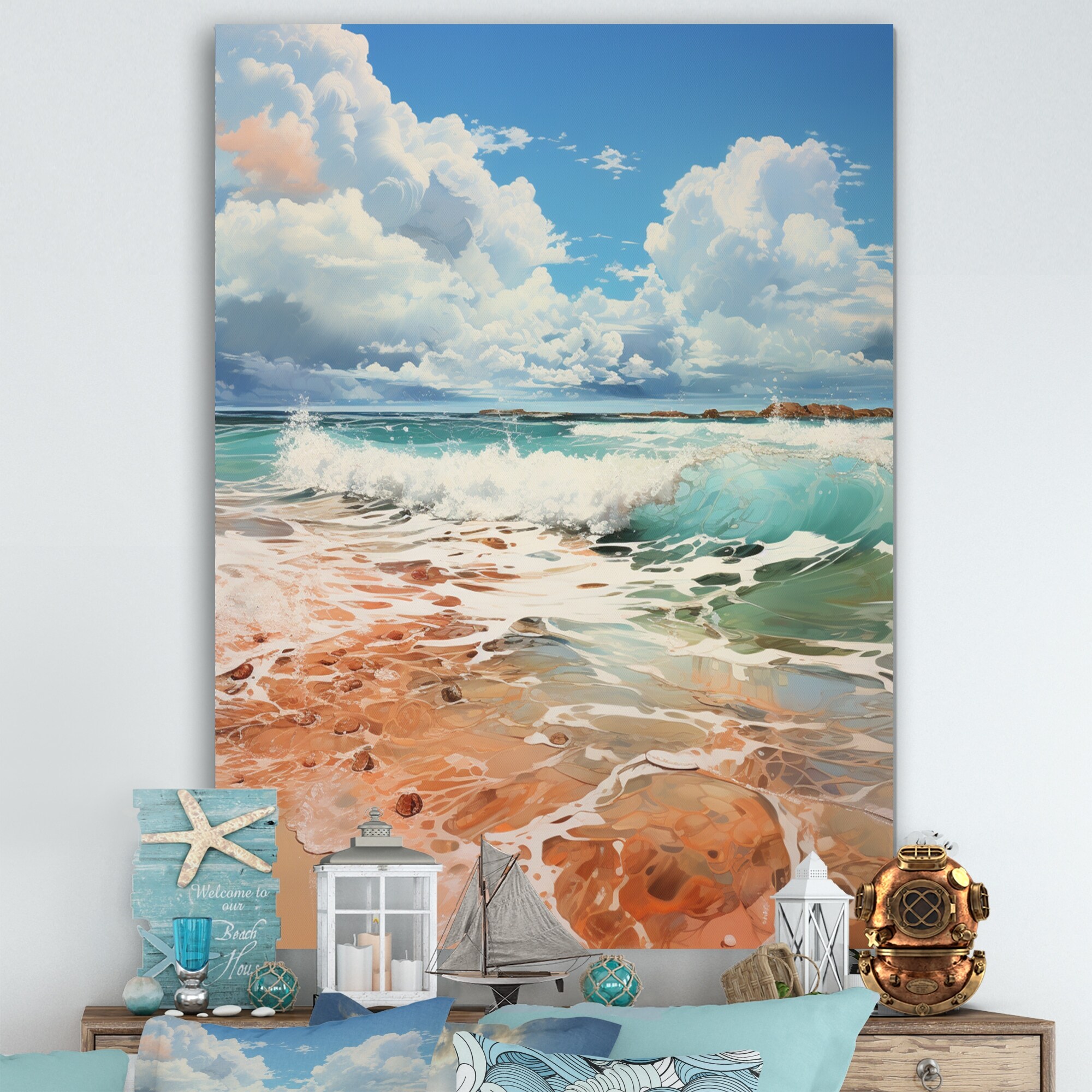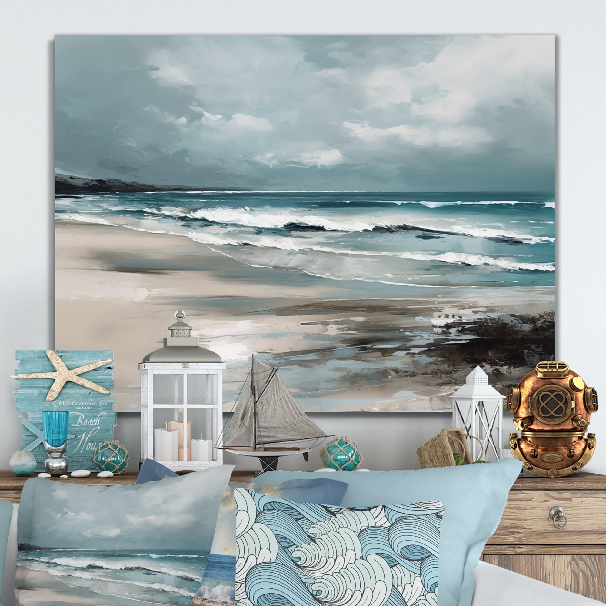 Designart "Coastal Waves III" Modern Landscape Beach Metal Wall Art