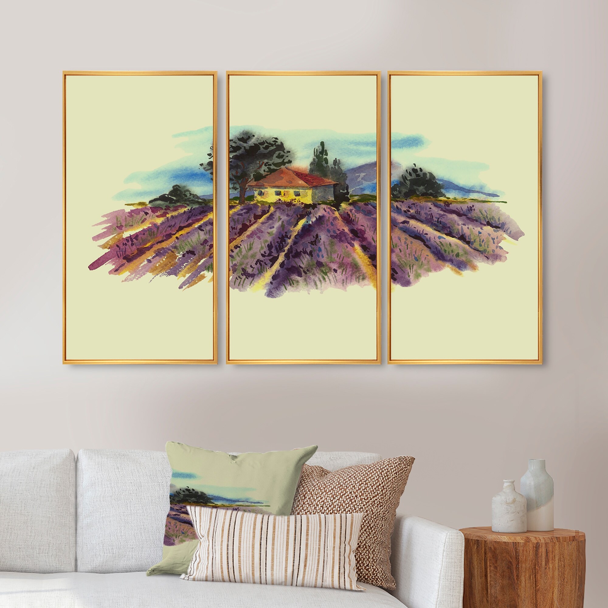 Designart "Landscape With Blooming Lavender" Traditional Framed Wall Decor Set of 3 - 4 Colors of Frames