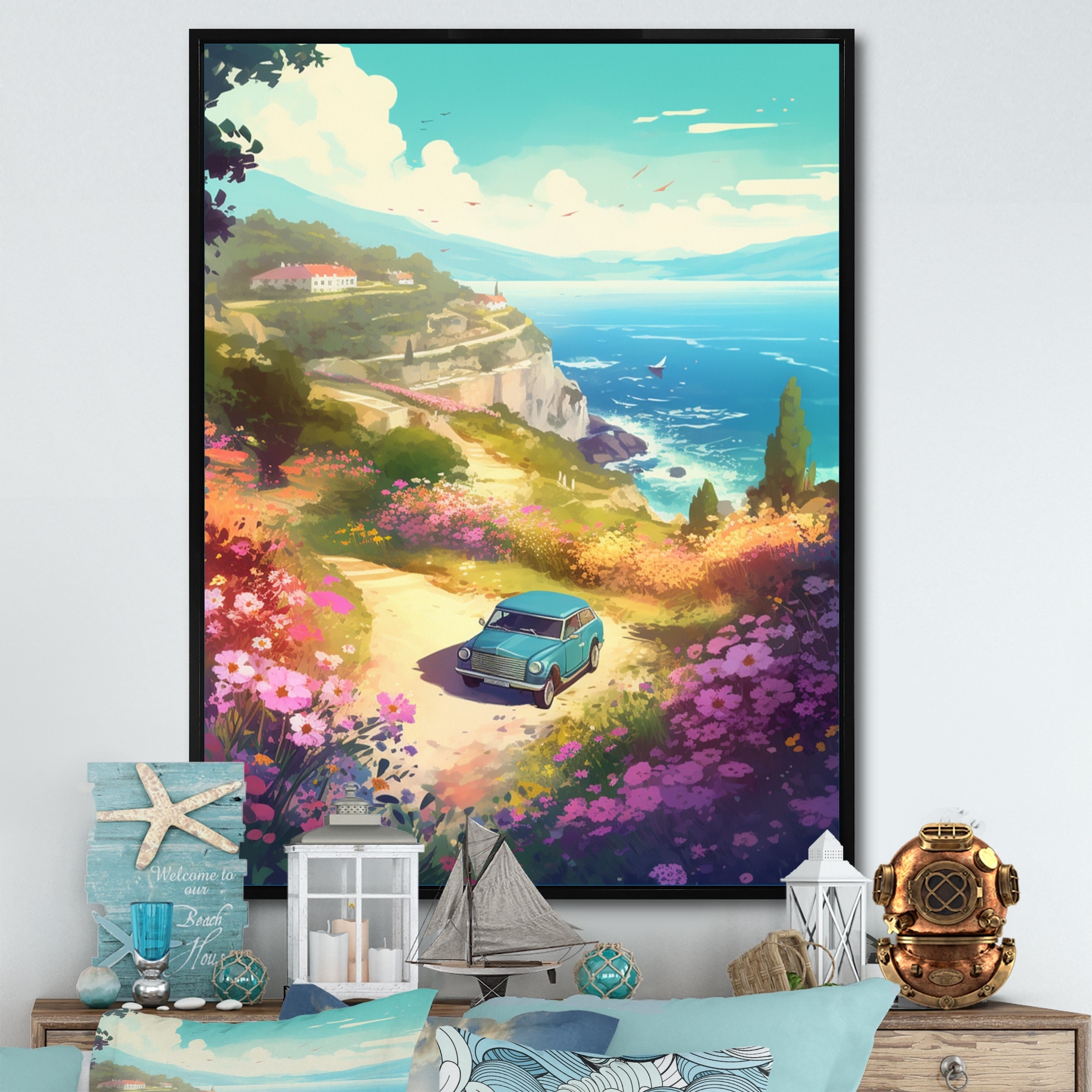 Designart "Seaside Drive V" Modern Landscape Beach Framed Canvas Art Print