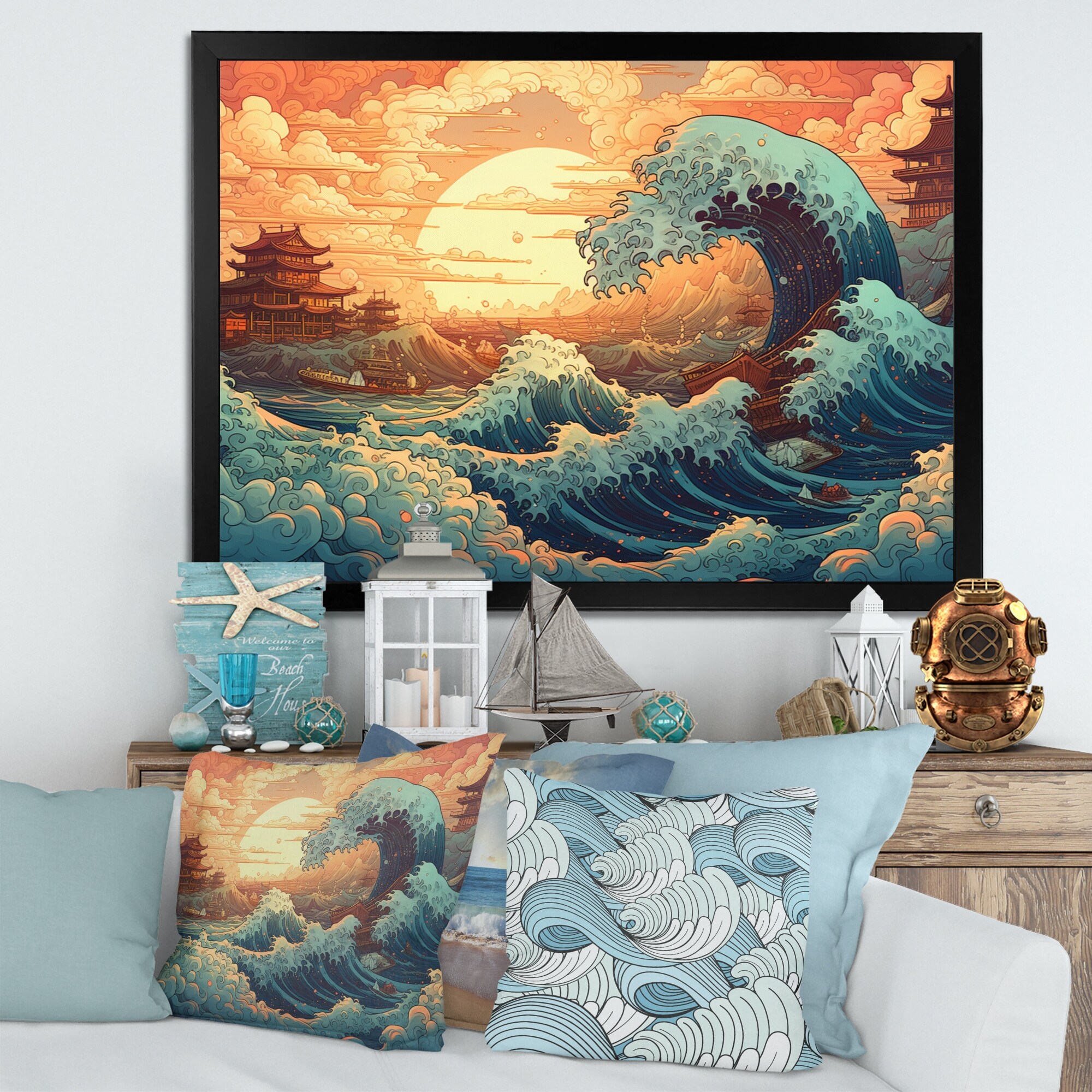 Designart "Roaring Waves Ii" Modern Landscape Beach Framed Canvas Print