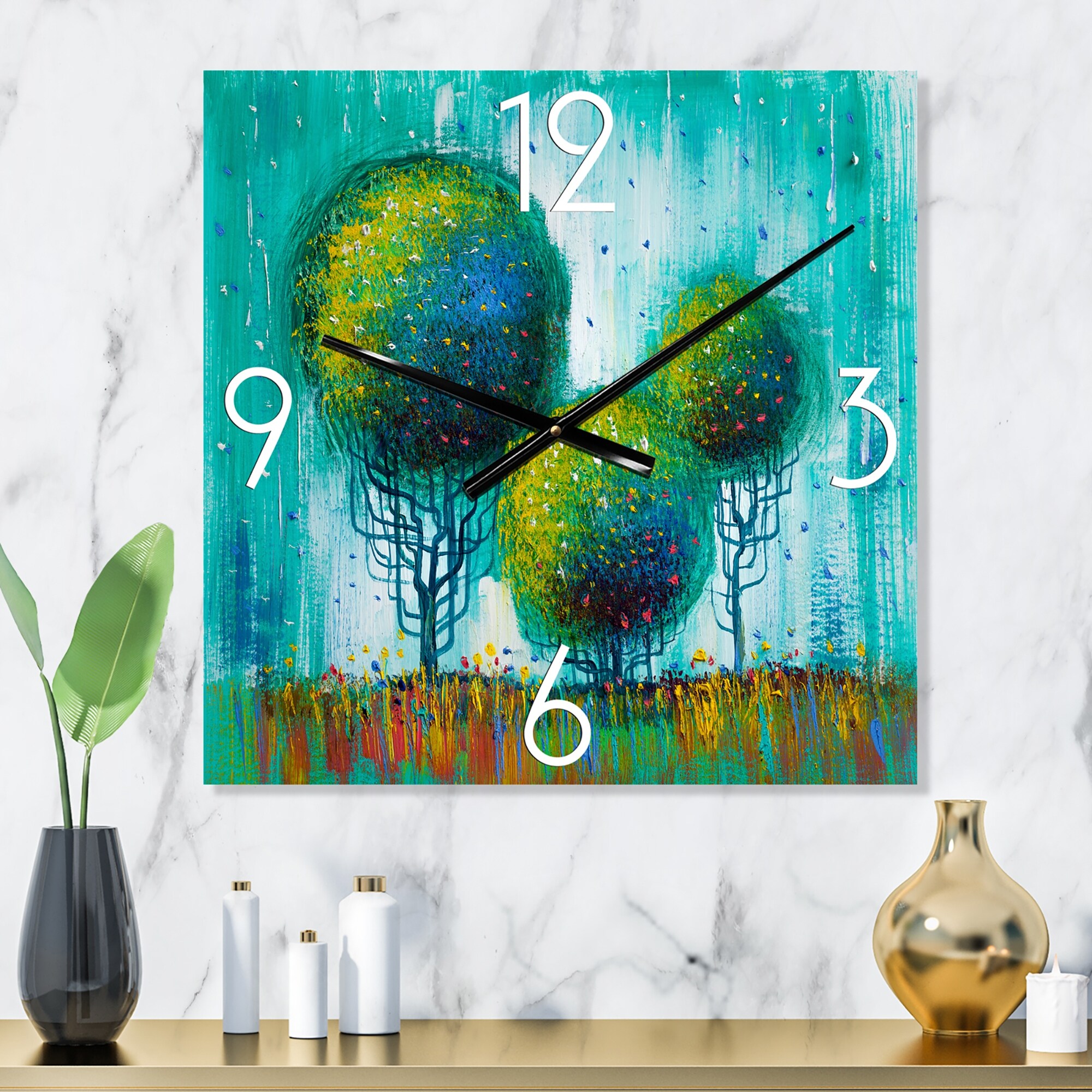 Designart 'Colourful Trees Impressionist Landscape II' Modern Large Wall Clock