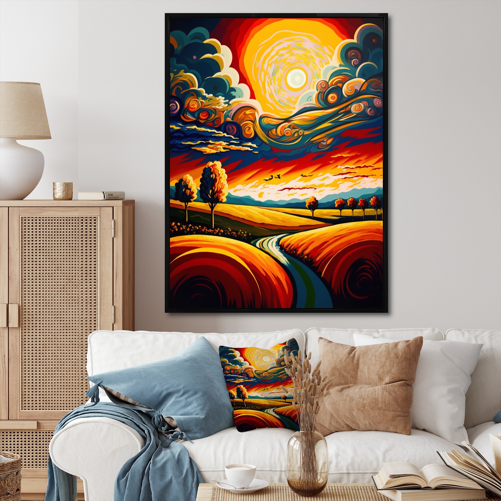 Designart "Radiating Sun Over the Plains I" Landscape Modern Framed Canvas Print