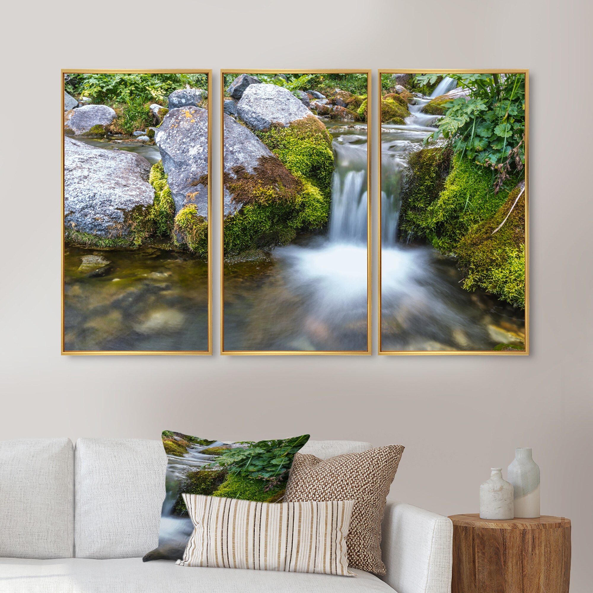 Designart "Summer Water Stream" Landscape Framed Canvas Wall Art Set of 3 - 4 Colors of Frames