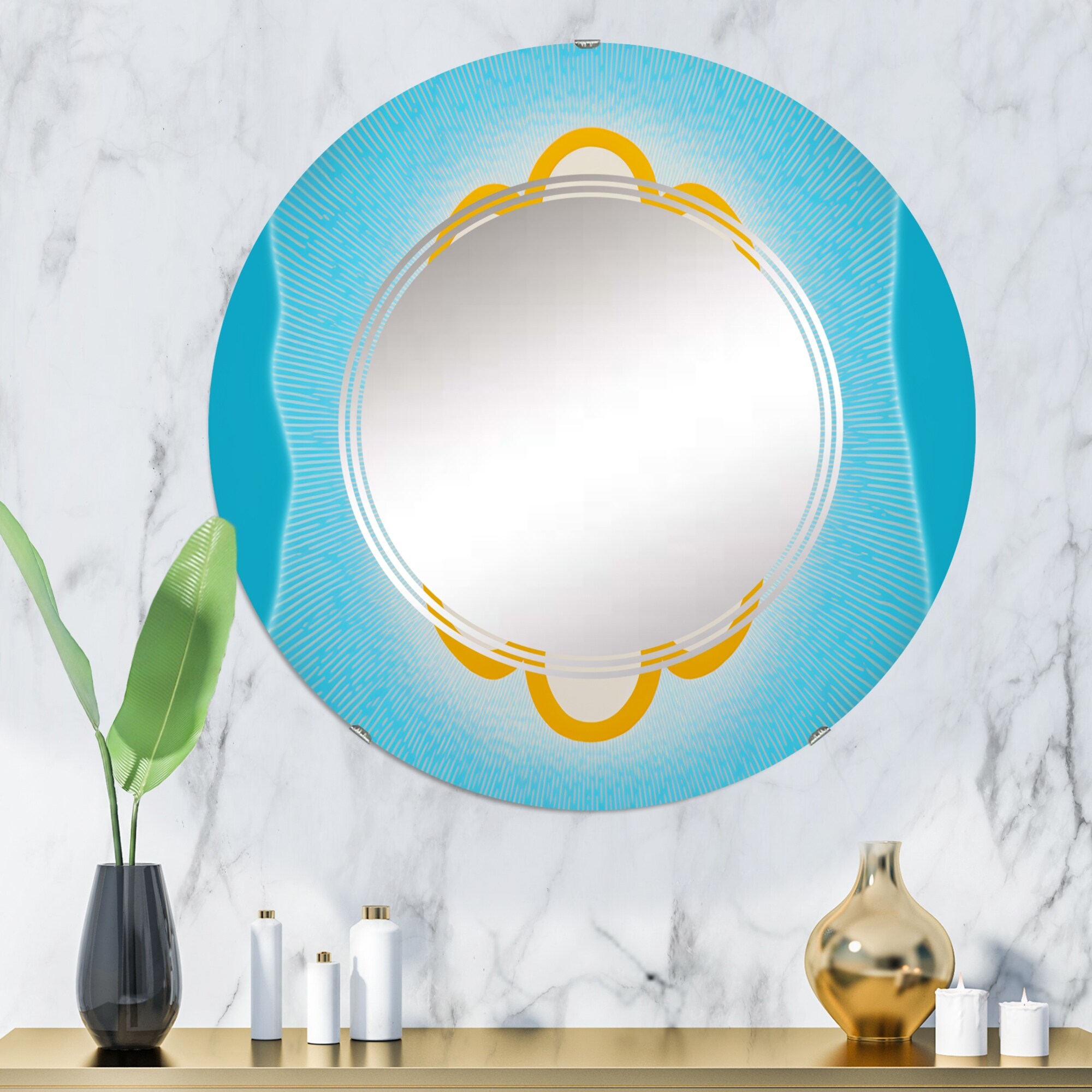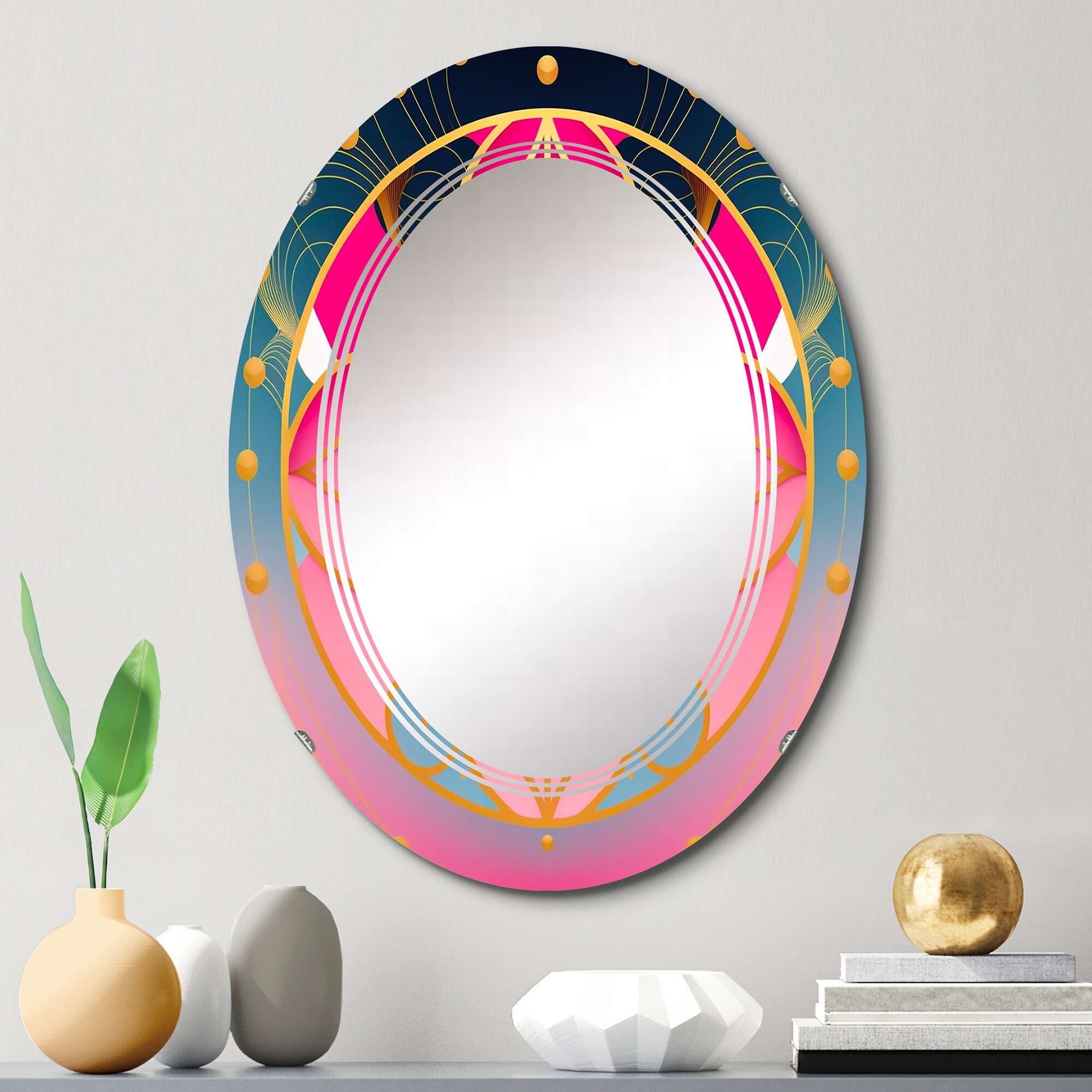 Designart 'Golden Sphere Geometrics' Printed Religious Landscape Wall Mirror