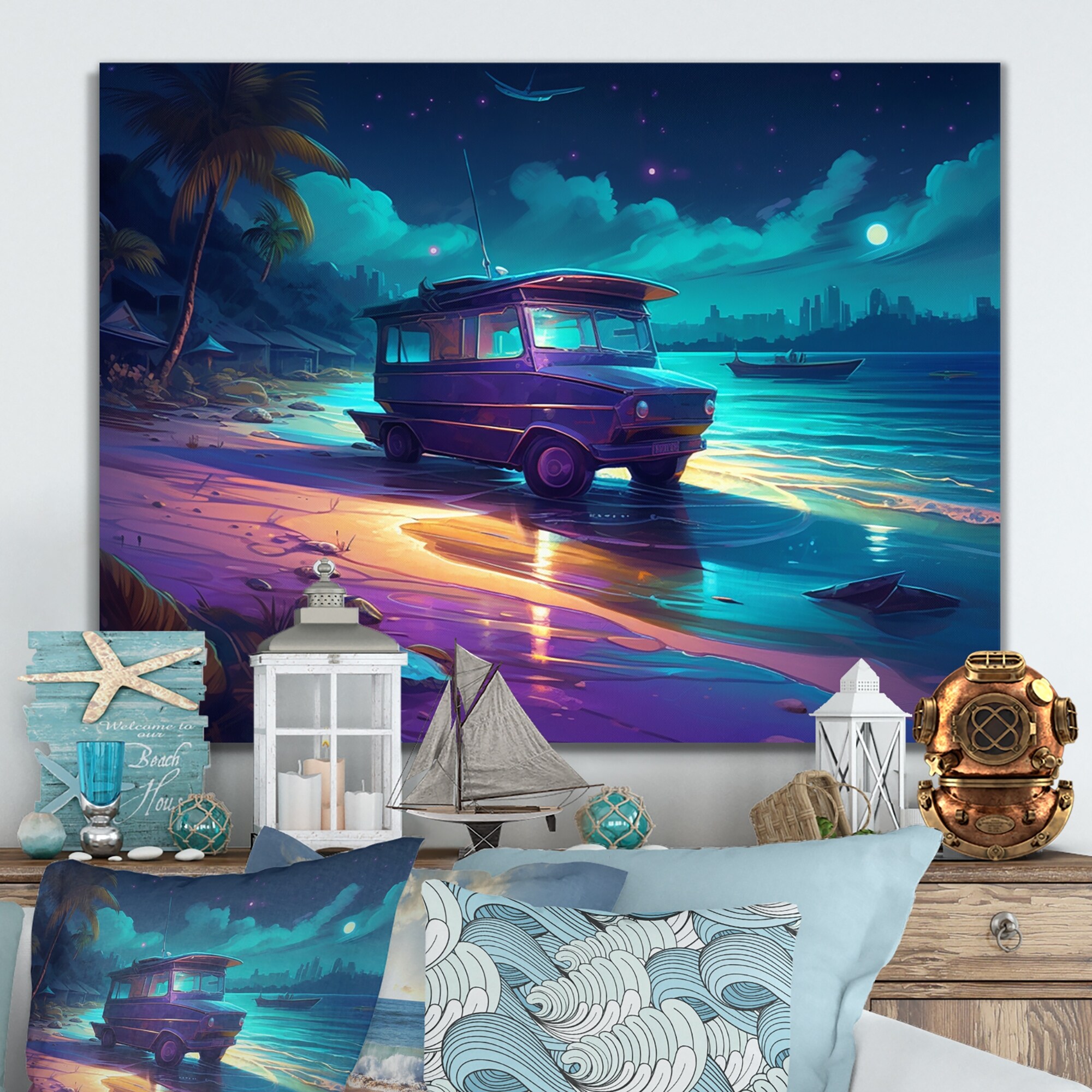 Designart "Beachside Camping II" Modern Landscape Beach Metal Wall Art