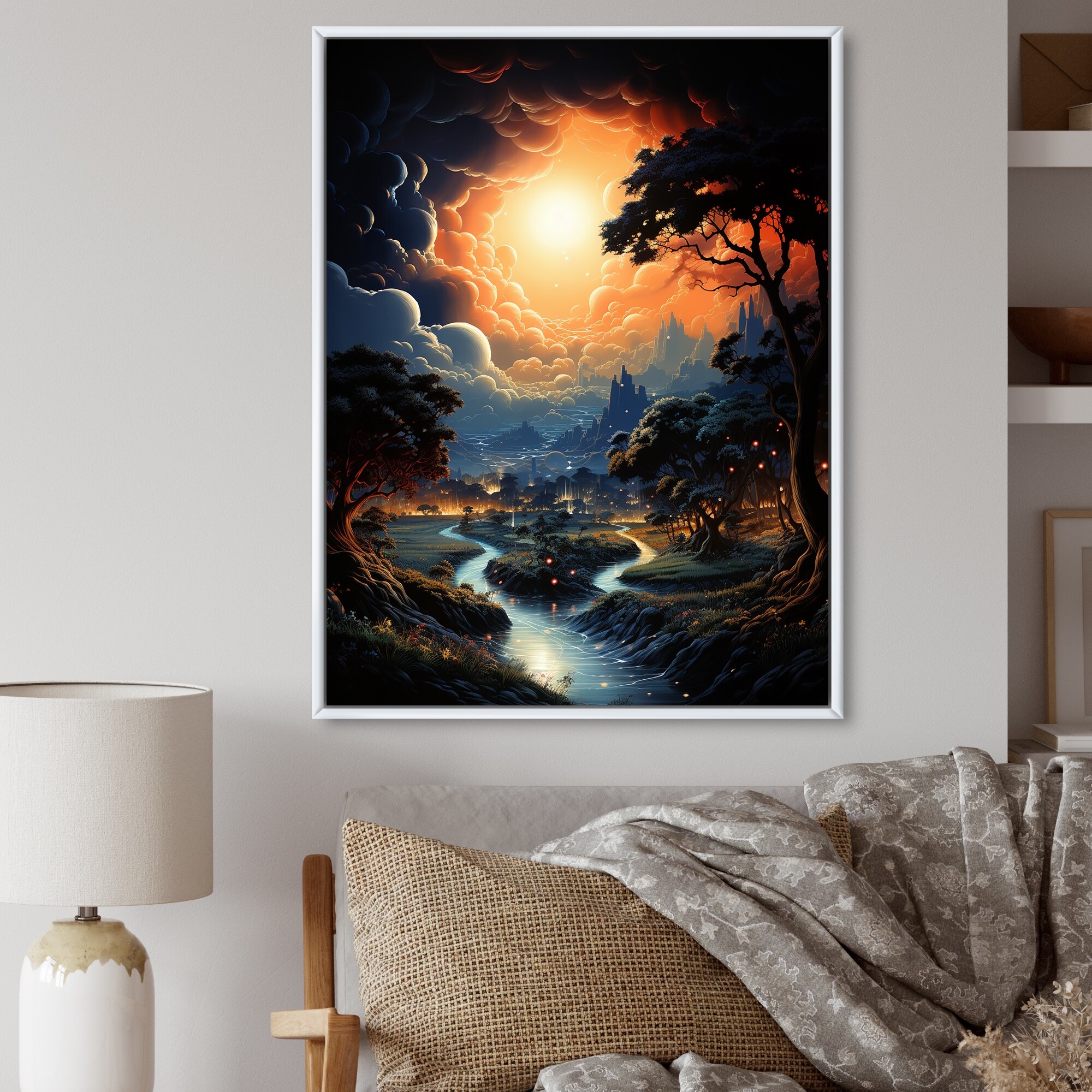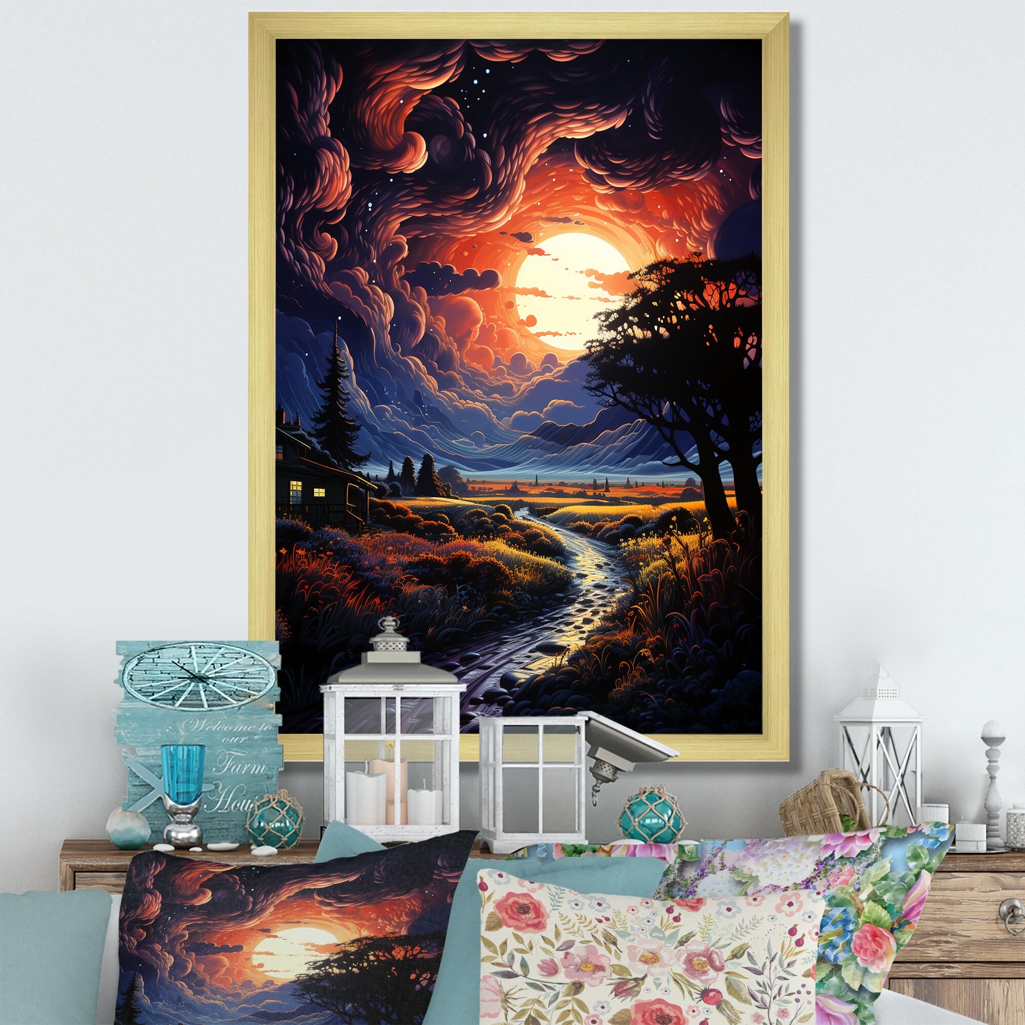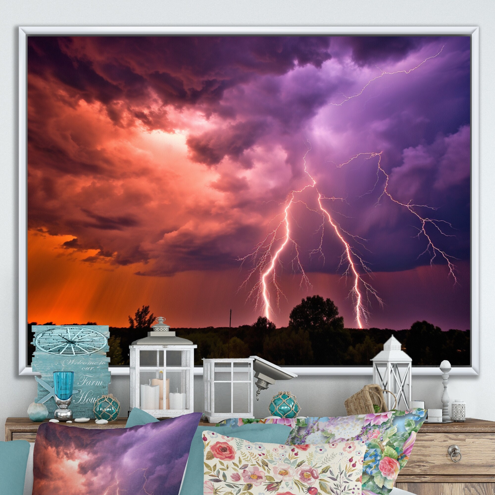 Designart "Lightning Lightning Dance Pastoral" Lightning Framed Wall Art Prints