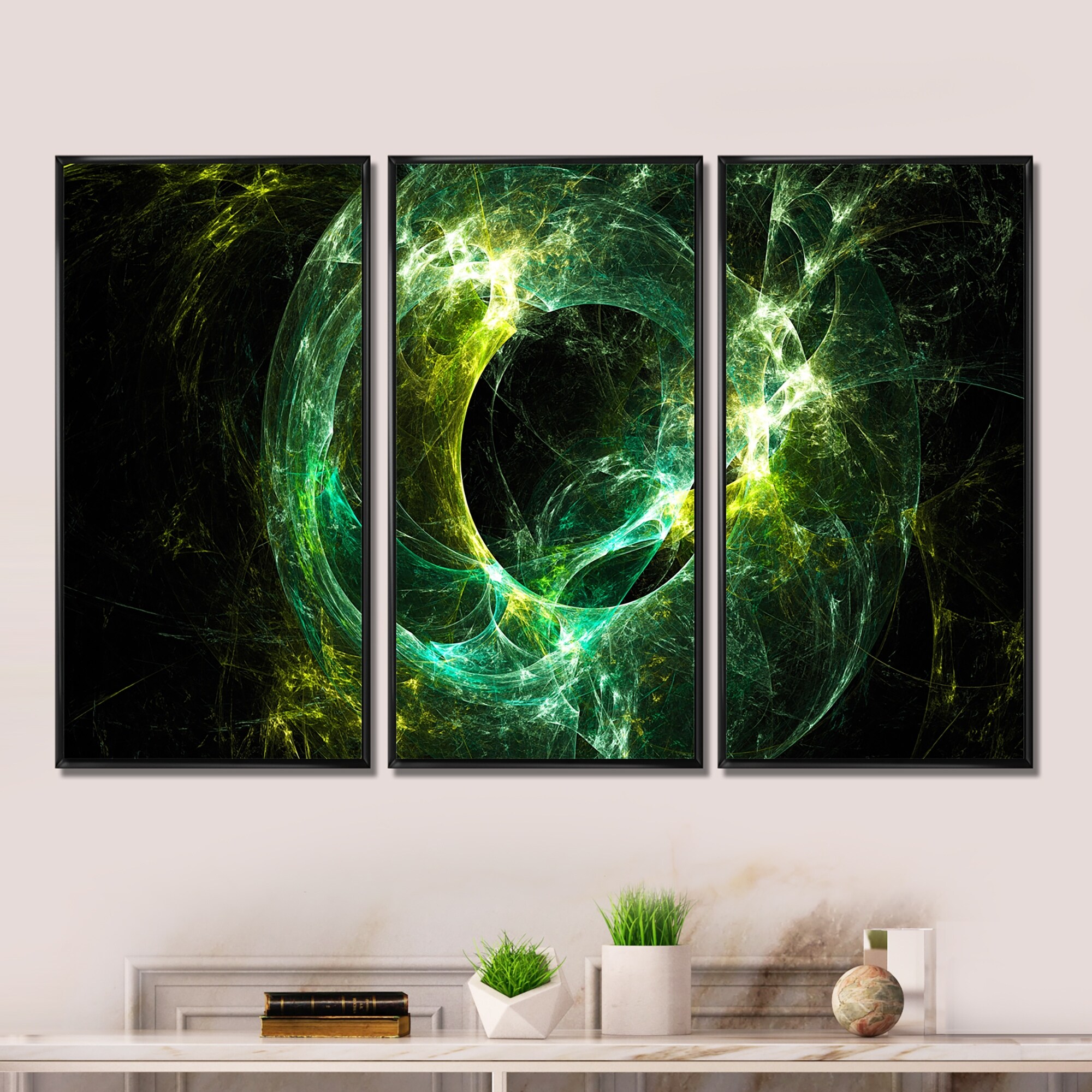 Designart "Green Sparkling Lightning" Abstract Framed Art Prints Set of 3 - 4 Colors of Frames