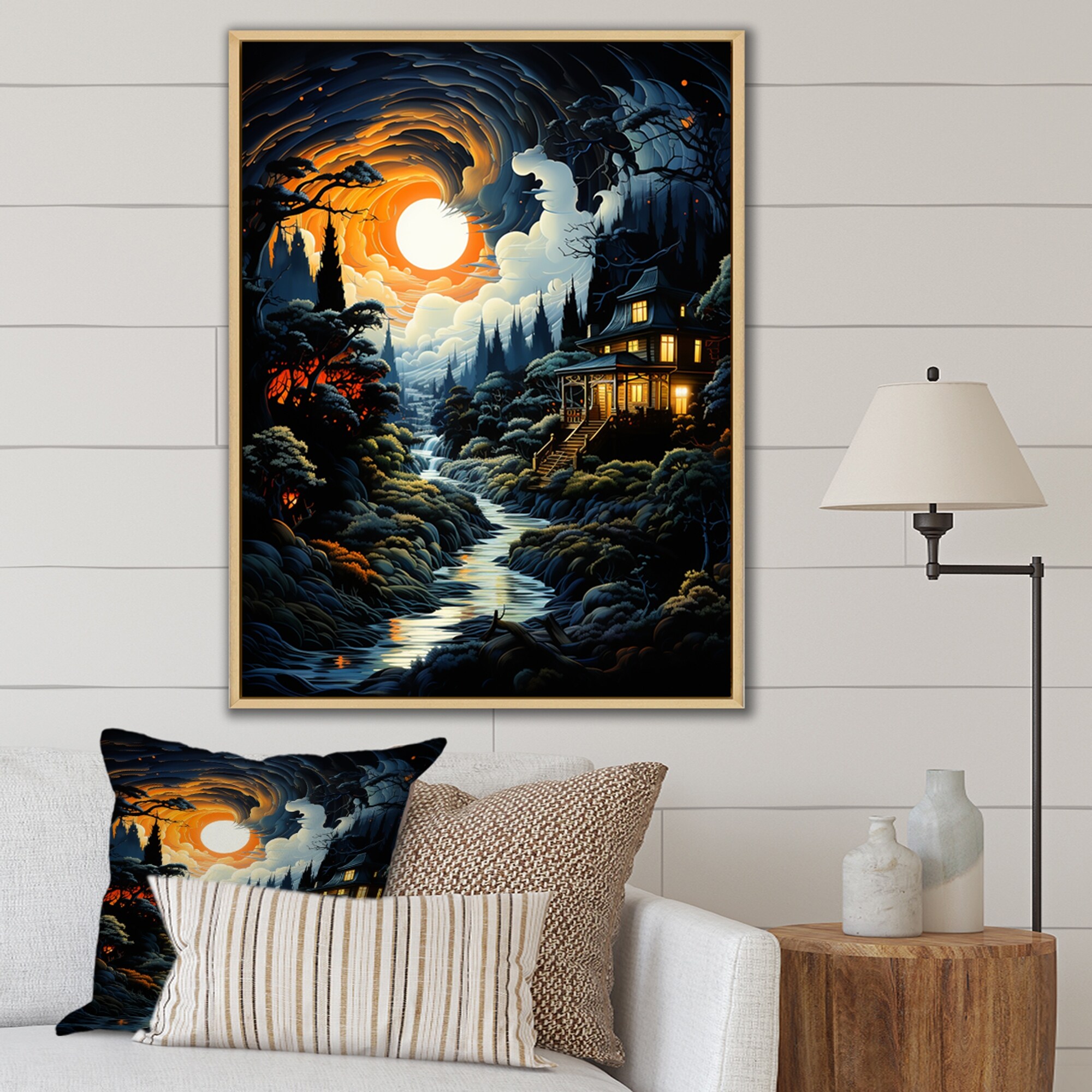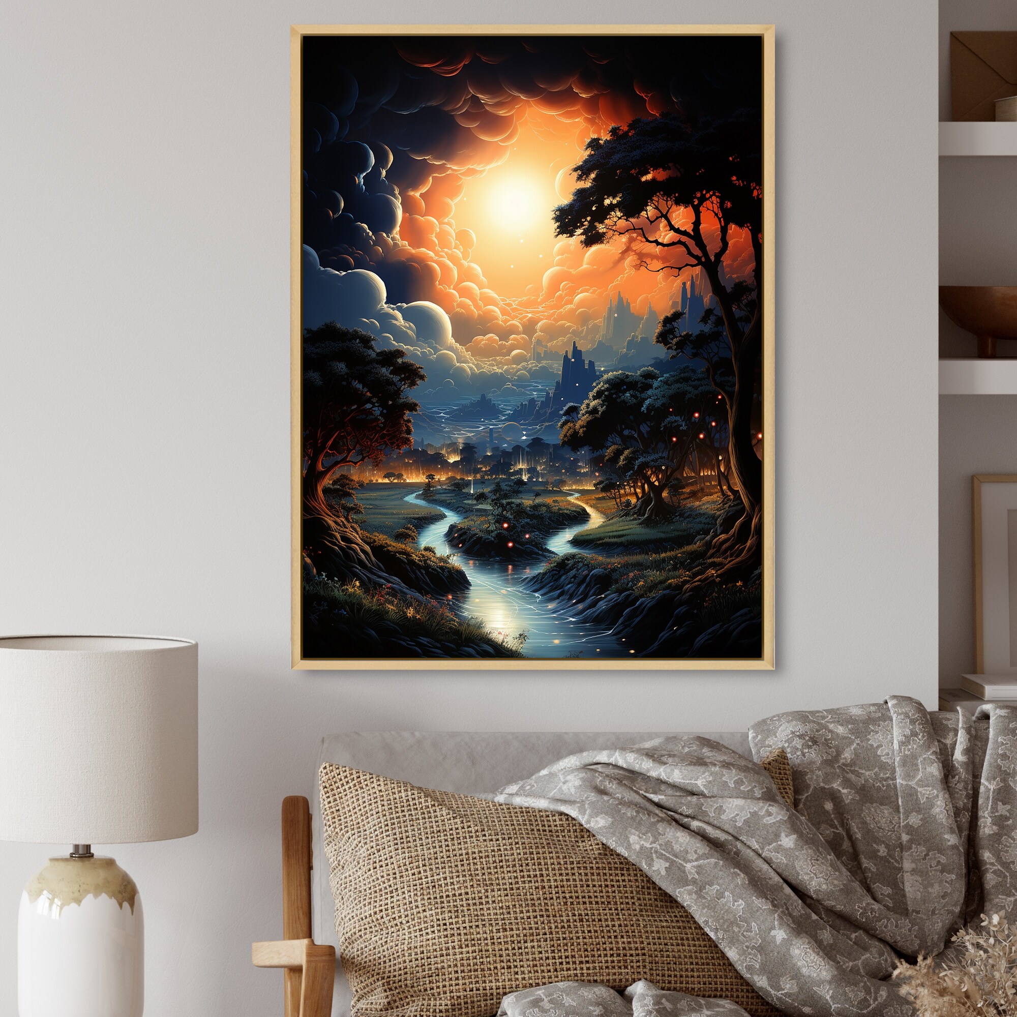 Designart "Lightning Lightning Dance Pastoral" Lightning Framed Canvas Print