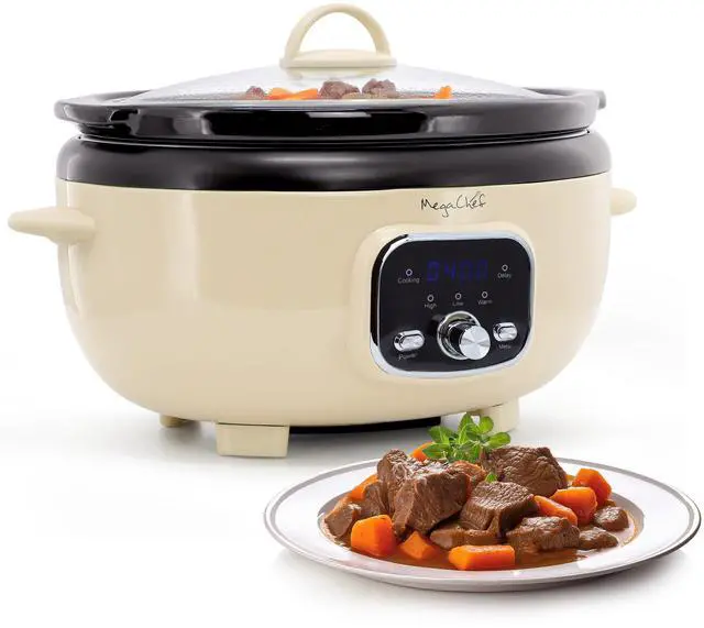MegaChef 3.5 Liter Oval Electric Digital Slow Cooker in Cream with Black Pot
