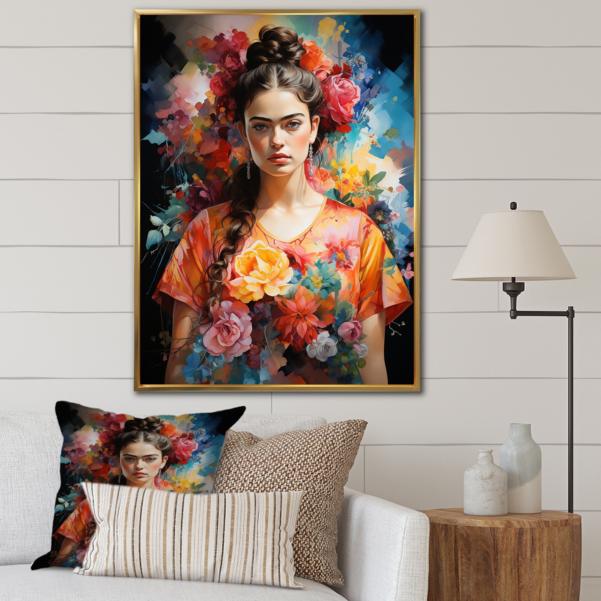 Designart "Colorful Teal Mexico Fridas Garden Portrait" Mexico Framed Canvas Wall Art