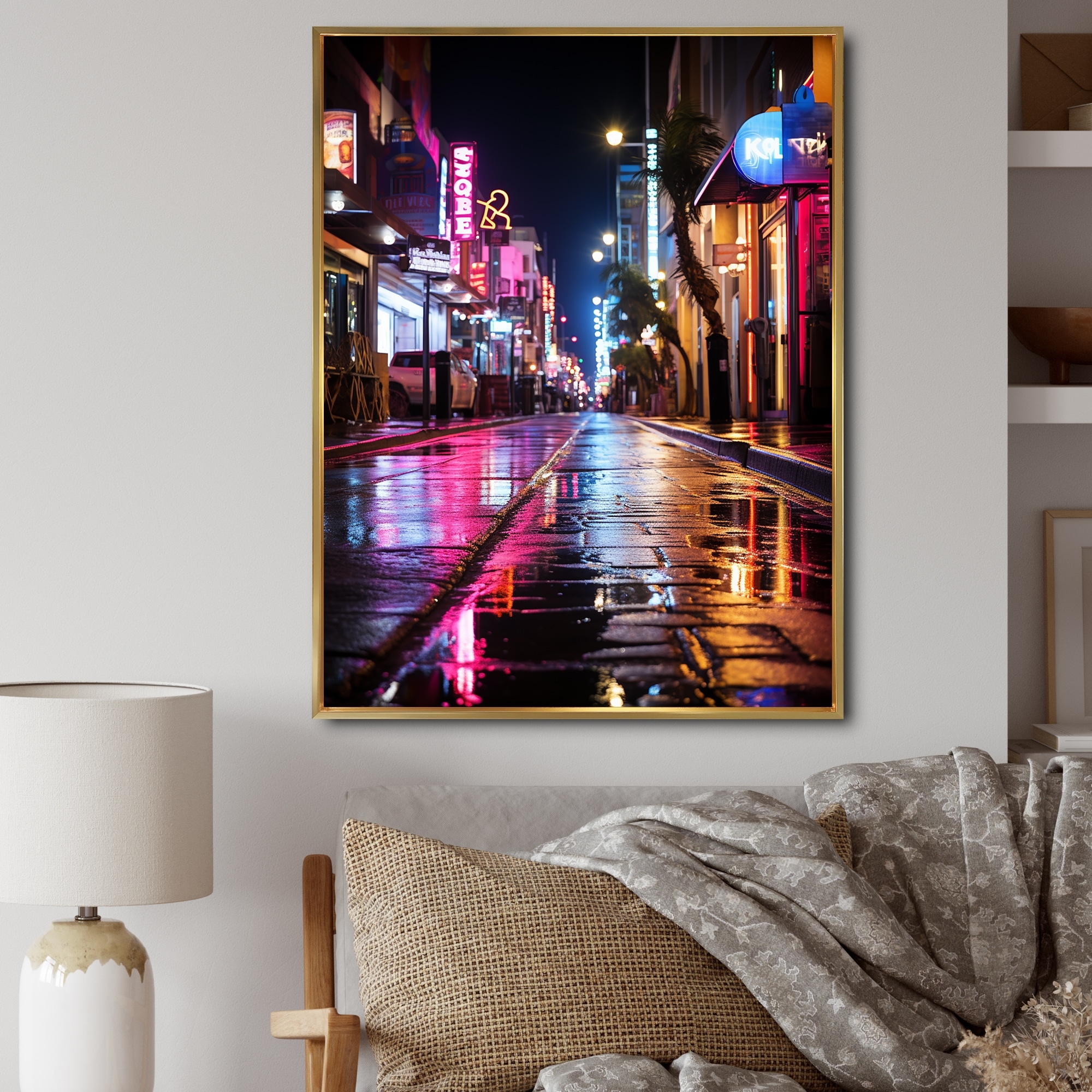 Designart "Pink Miami Nightlife Rhythm I" City Miami Framed Canvas Wall Art