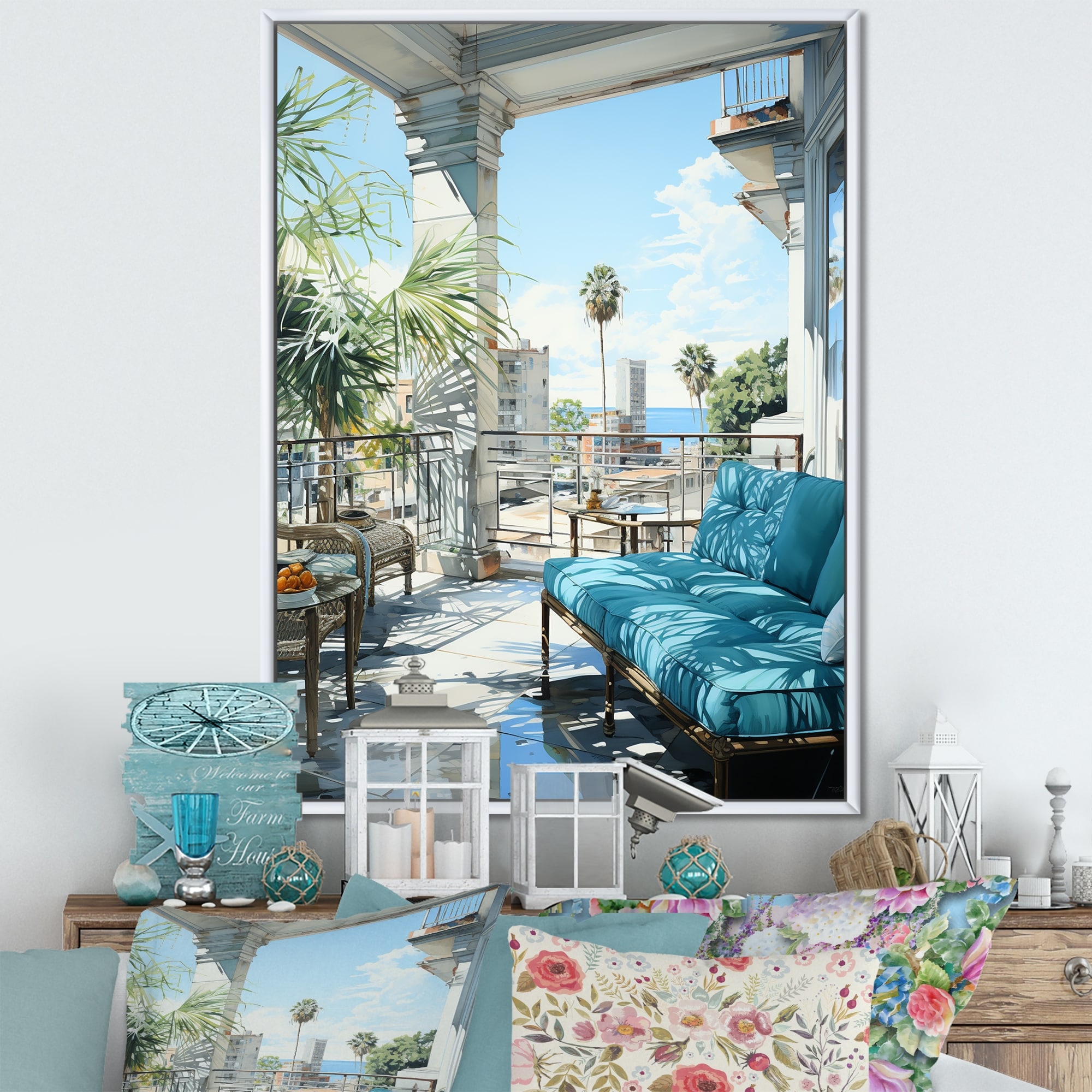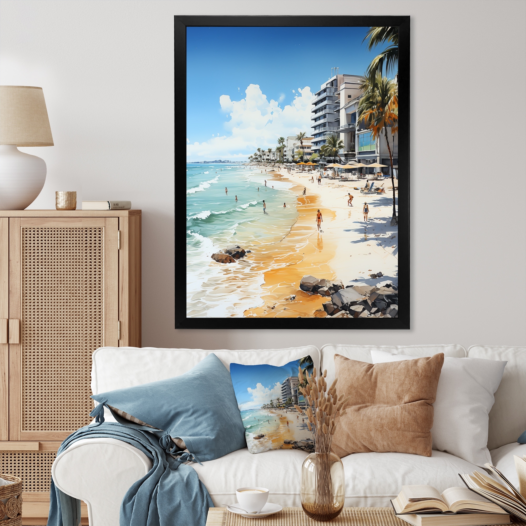 Designart "Beige Turquoise Miami Beach" City Miami Framed Canvas Art Print