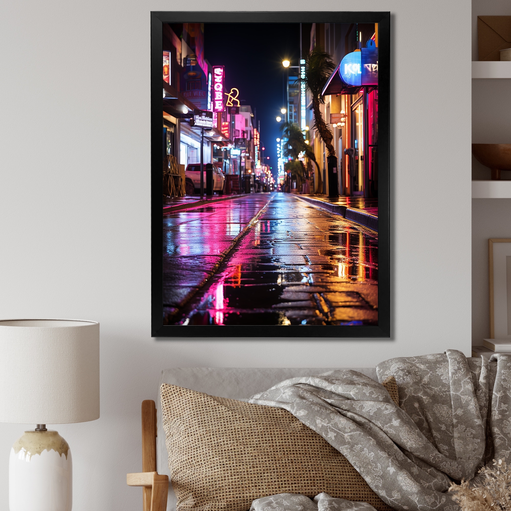 Designart "Pink Miami Nightlife Rhythm I" City Miami Framed Wall Art Prints
