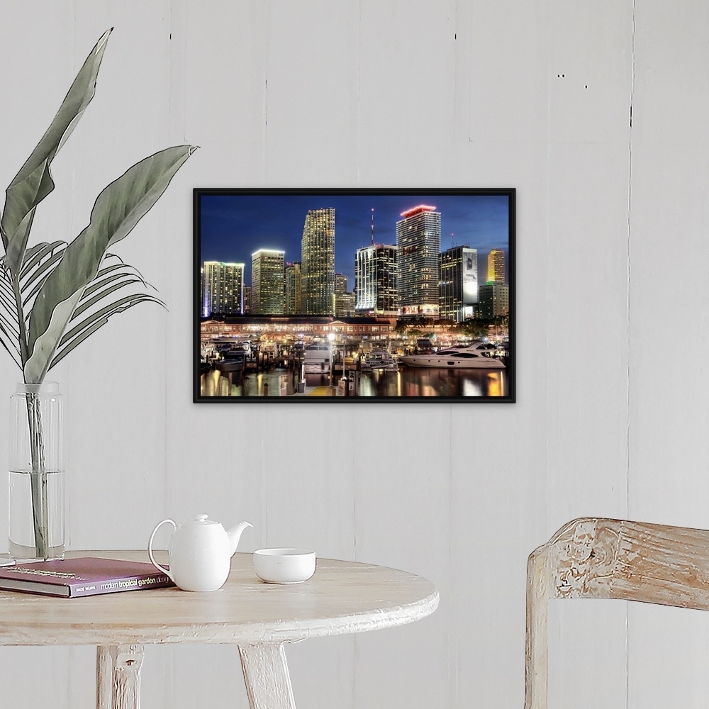 "Miami skyline city in Florida." Black Float Frame Canvas Art