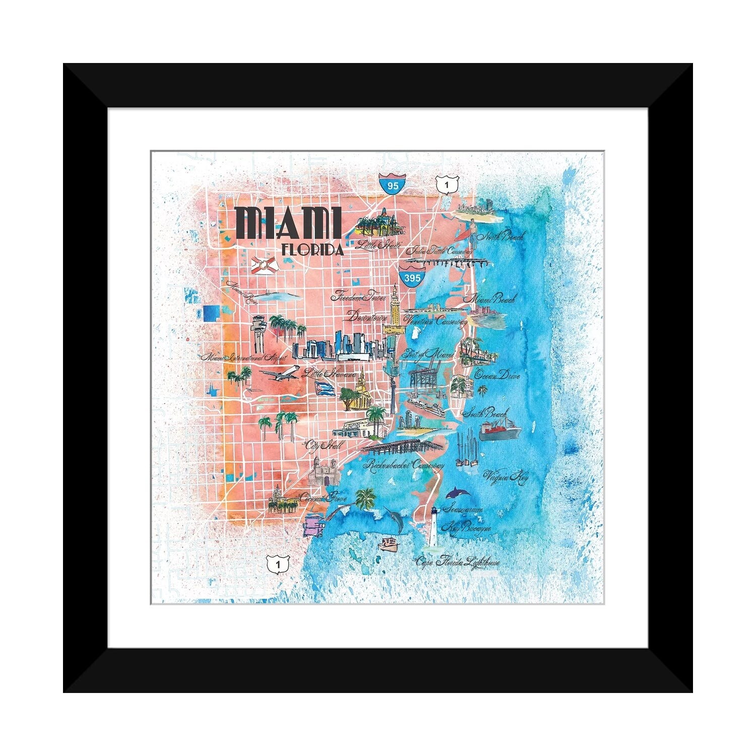 iCanvas "Miami Florida Illustrated Map" by Markus & Martina Bleichner
