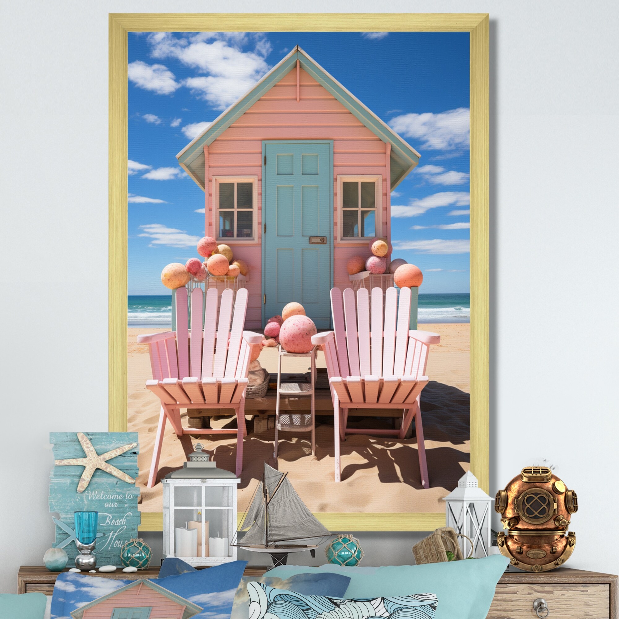 Designart "Pink Miami Chairs I" Beach Framed Wall Art Prints