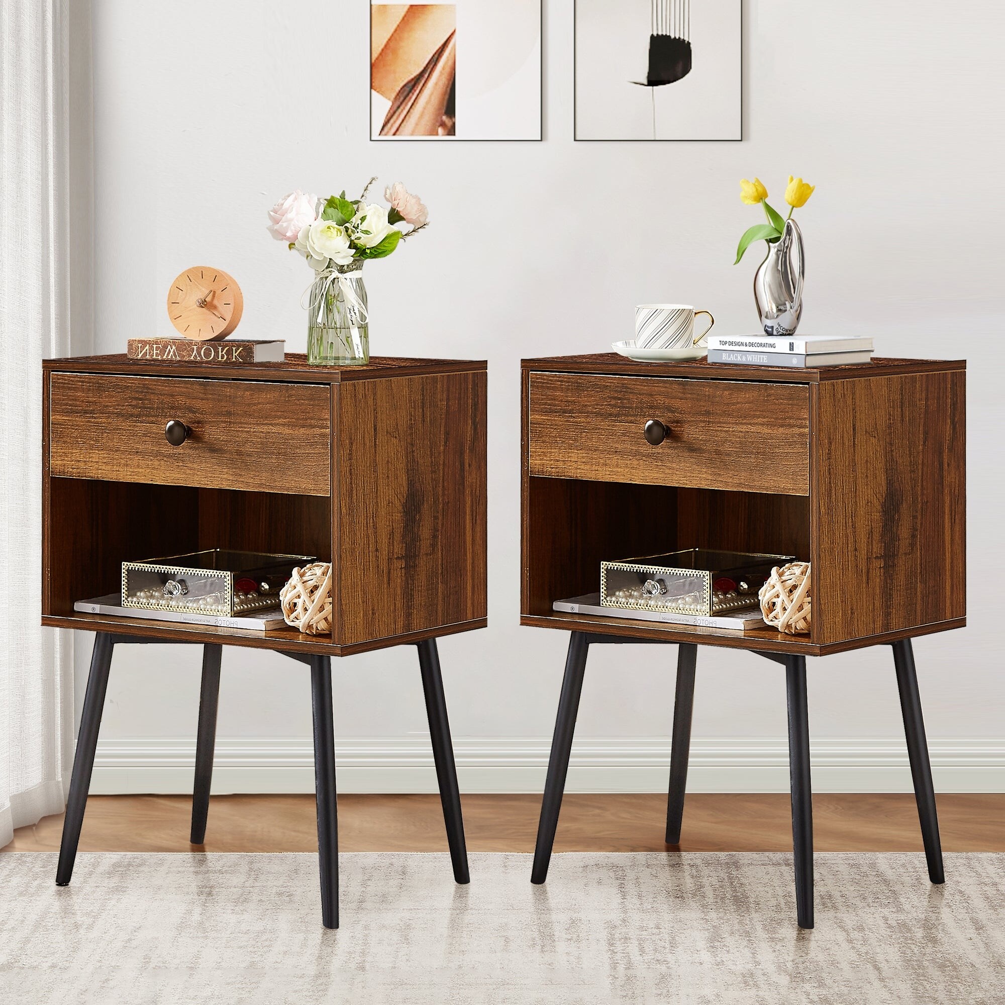 VECELO Mid Century Modern 1-Drawer Nightstand with Storage Shelf (Set of 1/Set of 2)