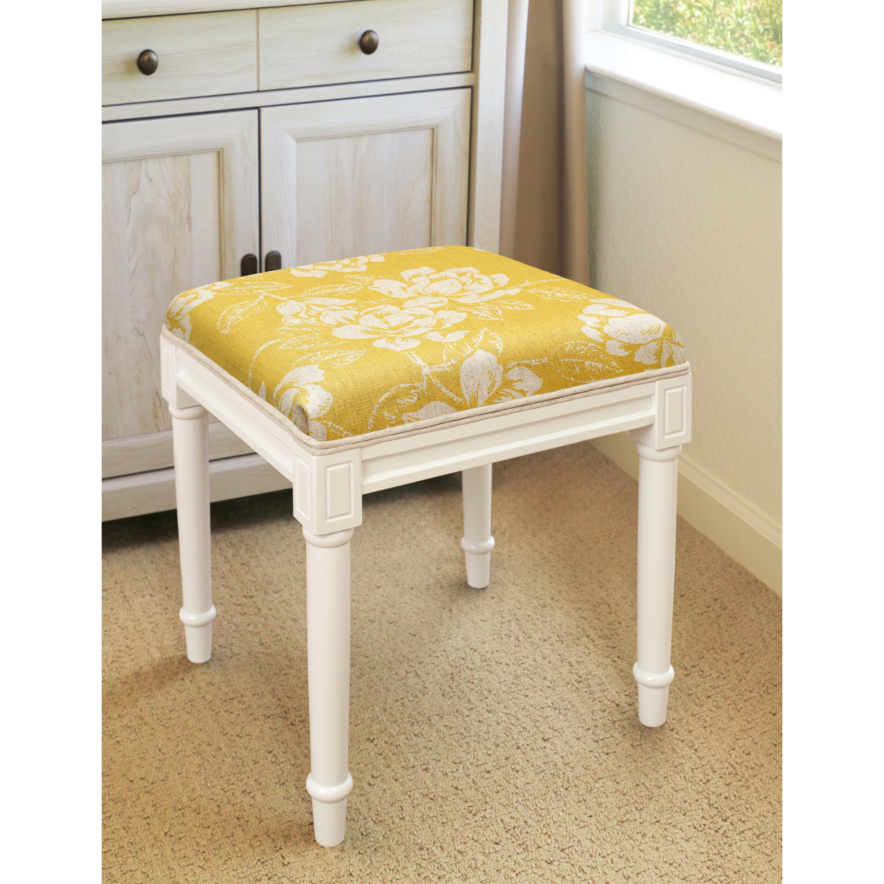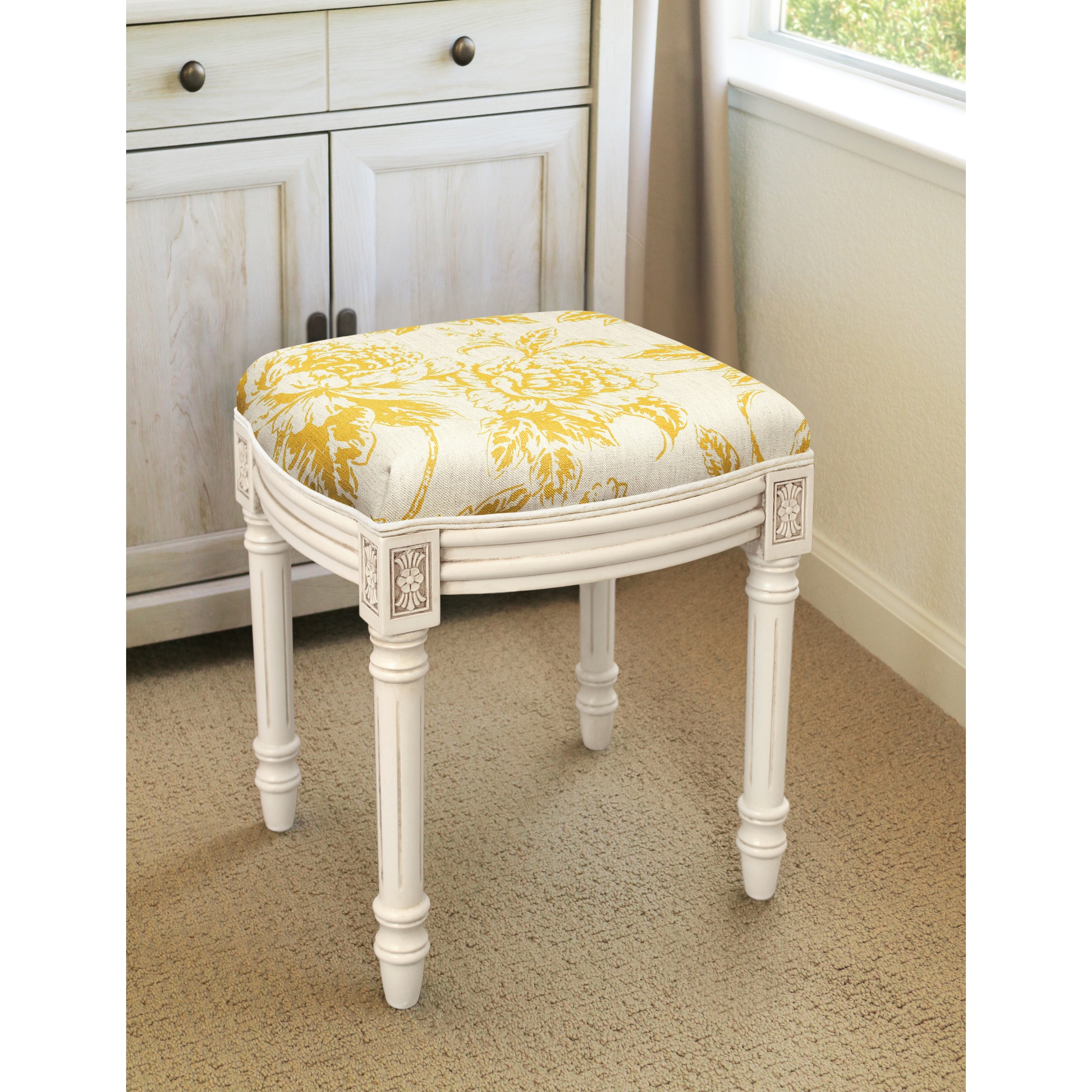 Mustard Tuscan Floral Vanity Stool with distressed Grey Frame