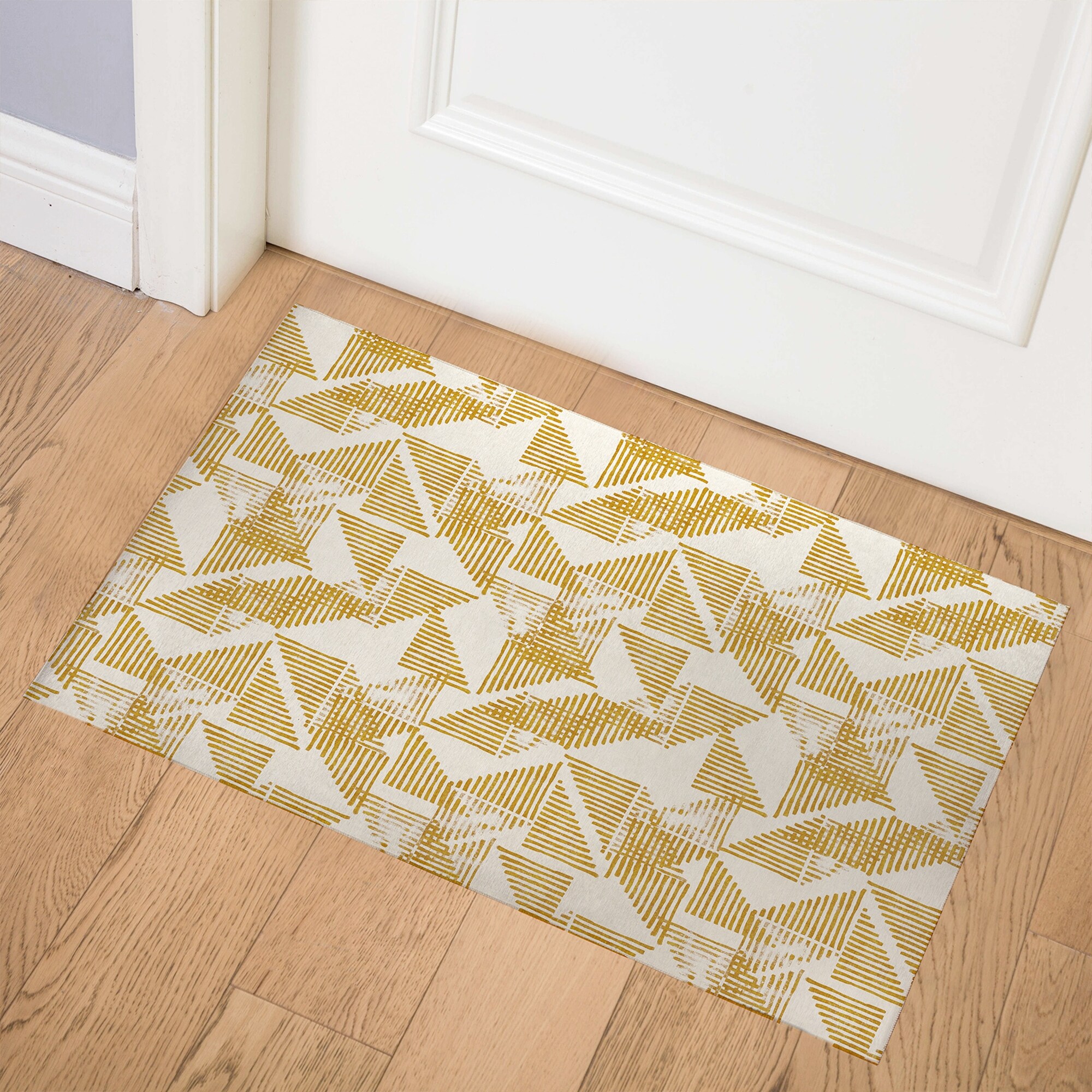 STRIPE TRIANGLE BLOCK PRINT MUSTARD Indoor Floor Mat By Kavka Designs