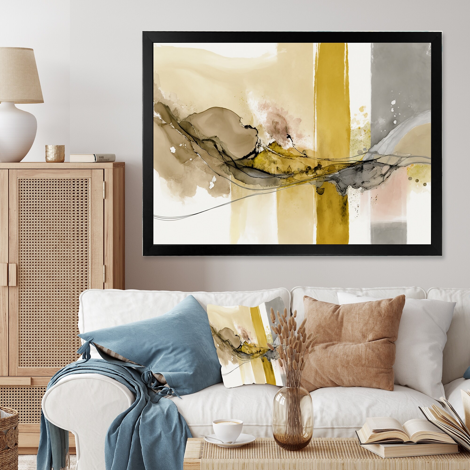 Designart "Touched By Mustard Yellow And Ultimate Gray V" Abstract Liquid Ink Framed Canvas Wall Art Print
