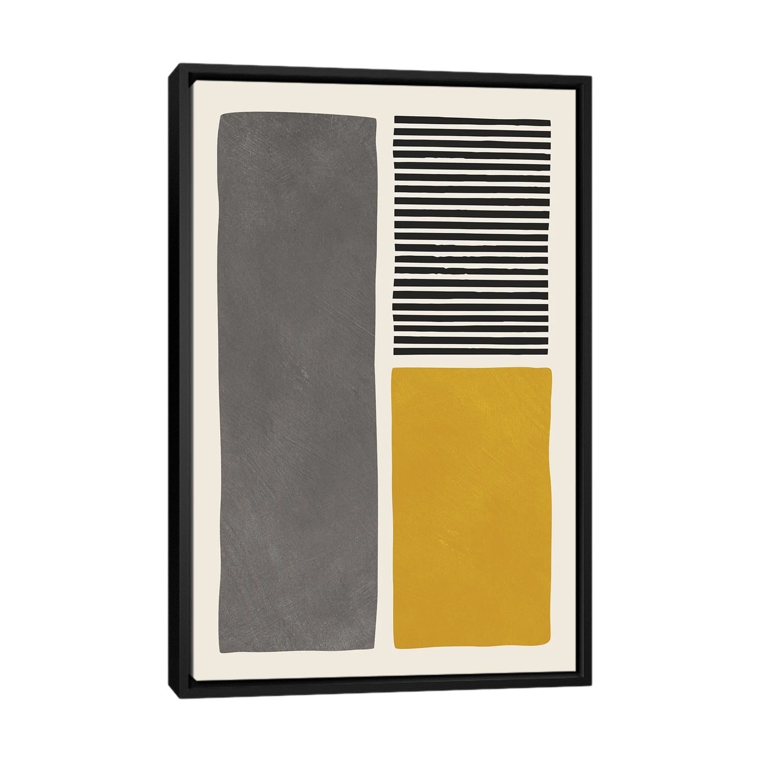 iCanvas "Mustard Gray Black Lines I" by EmcDesignLab Framed Canvas Print